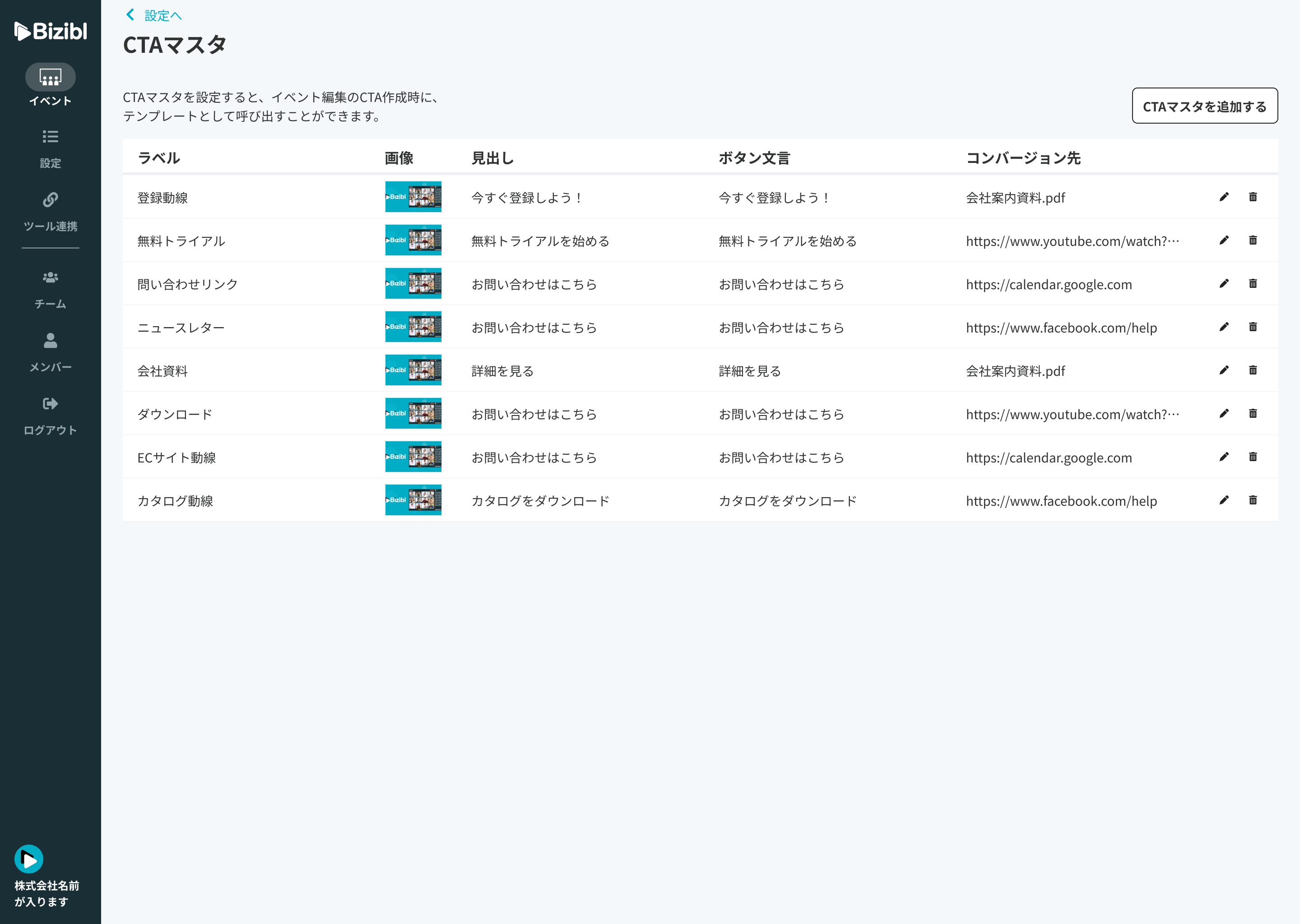 ・登録したCTAマスタは、全てのイベントで利用することができます