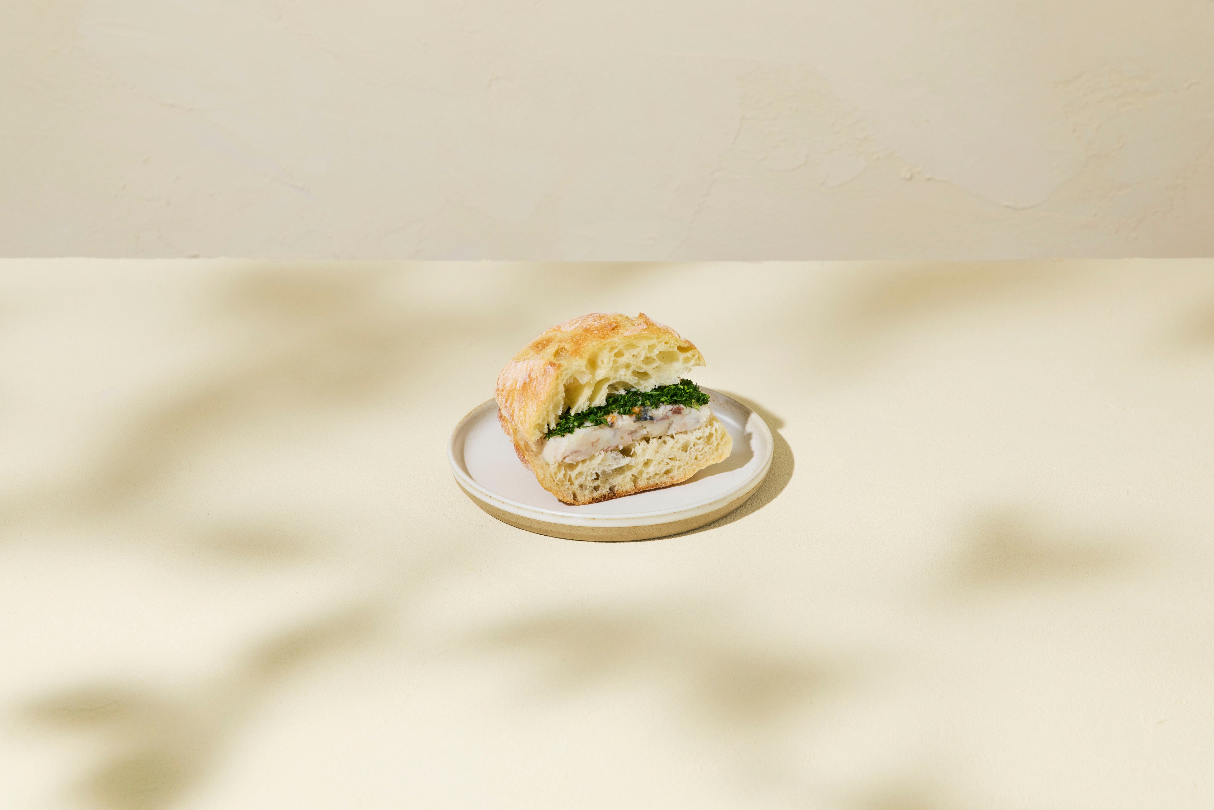 さばポテト サンドイッチは、香ばしく焼き上げたさばの旨みをなめらかなマッシュポテトでやさしく包み込み、ギリシャヨーグルトを合わせたチーズペーストの爽やかな酸味と、燻製マヨネーズのコクを重ねました。ピスタチオハム&チーズサンドイッチは、ピスタチオを練り込んだモルタデッラハムに同じくギリシャヨーグルトをブレンドしたチーズペーストを合わせました。いずれも軽やかな食感が魅力のチャバタでサンドし、素材の個性が重なり合う奥行きのある味わいに仕上げています。現在、鎌倉カフェと原宿カフェのみでお楽しみいただけるメニューとなっています。カフェでお気に入りのコーヒーと共にゆったり味わうのはもちろん、テイクアウトして鎌倉散策の合間のランチにもおすすめのサンドイッチです。