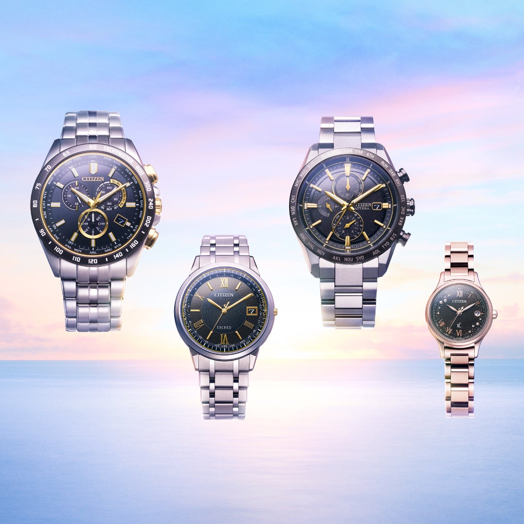 全てのモデルはシチズンの基幹技術である光発電エコ・ドライブ※1を搭載しています。文字板には、サステナブル素材である再生ポリカーボネートを採用。新しい“とき”を盛り上げるゴールド色をアクセントに、年始から春先に向けた新しい門出への祈りや期待を感じさせる縁起の良いゴールドリングをテーマにしました。特別な雰囲気を持たせつつ普段使いできる、絶妙なバランスのデザインです。『エクシード』、『アテッサ』と『シチズンコレクション』のメンズモデルのゴールド色はイエローゴールドを採用し、レディスモデル『クロスシー』は柔らかな印象のサクラピンク®※2を基調としたカラーリングです。