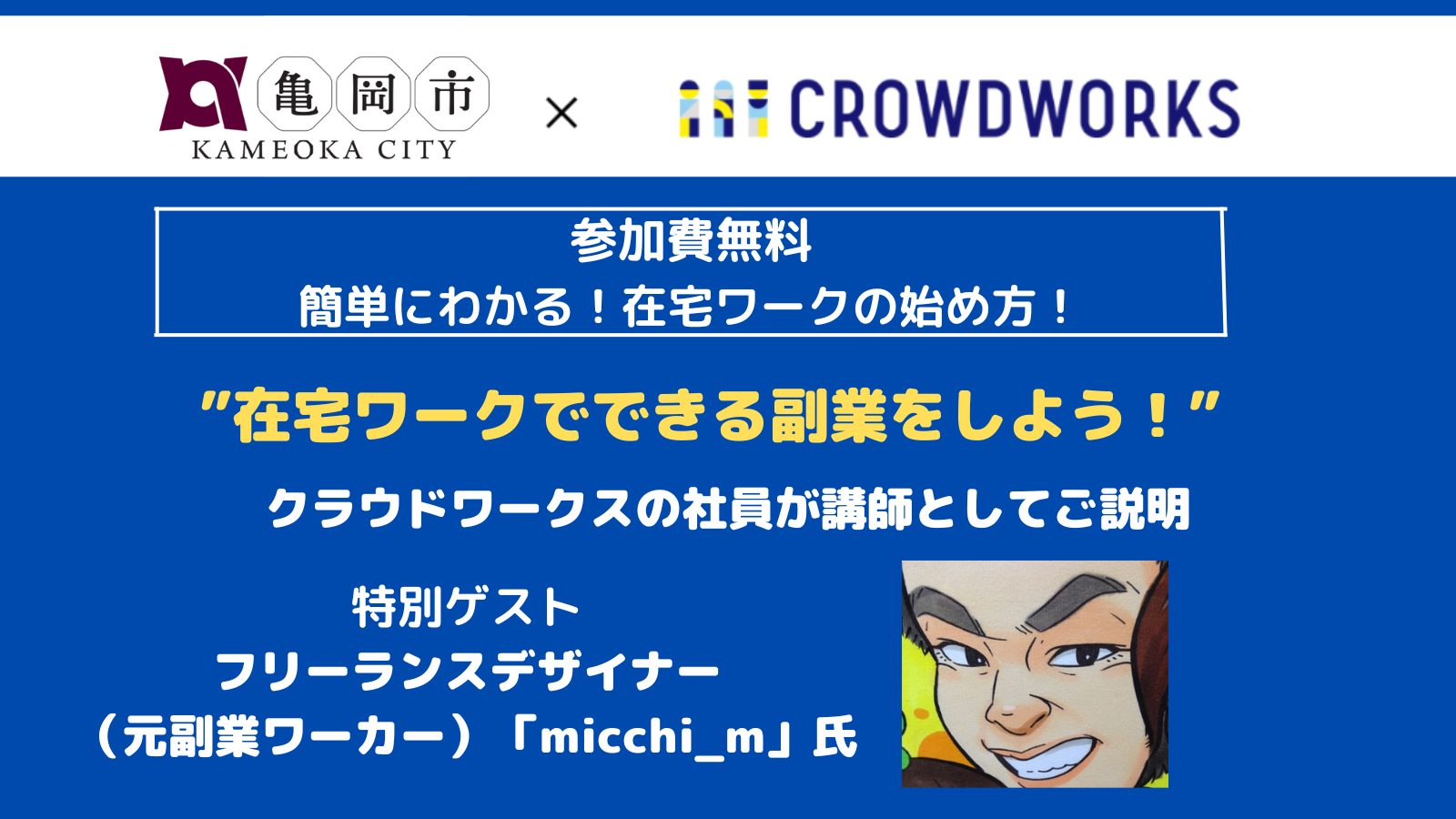 そうした中、クラウドワークスと亀岡市は共同で、在宅で出来る副業を推進し、亀岡市の人材活性化を図ることで、地域内外からの副業獲得に向けたスキル習得などを支援すべく、以下のセミナーを開催いたします。