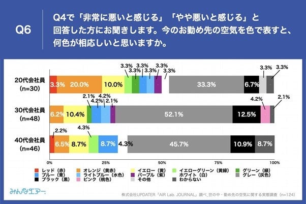- 今の勤め先の空気を悪いと感じている人が選んだ空気の色、全世代が「グレー」が第一位に