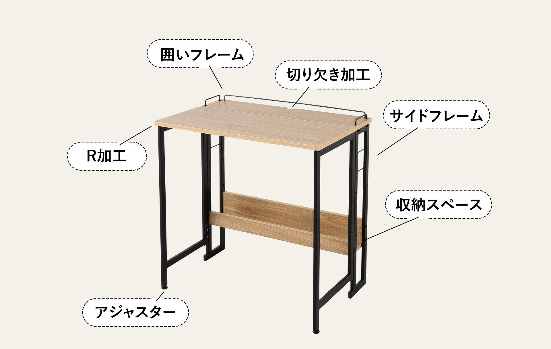 天板には筆記具やスマホなどの落下を防ぐフレームがあります。