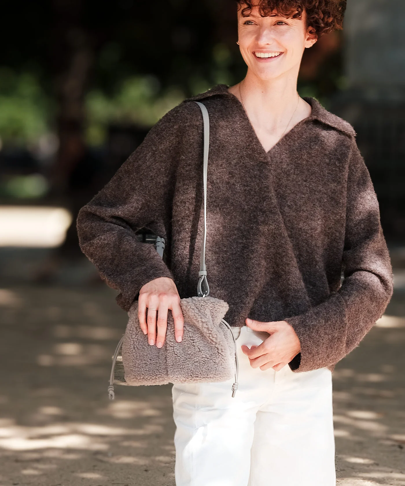 紐を絞るとぷっくり大人可愛い雰囲気に、緩めるとスッキリ洗練された印象にと、2つの異なるシルエットを楽しめます。