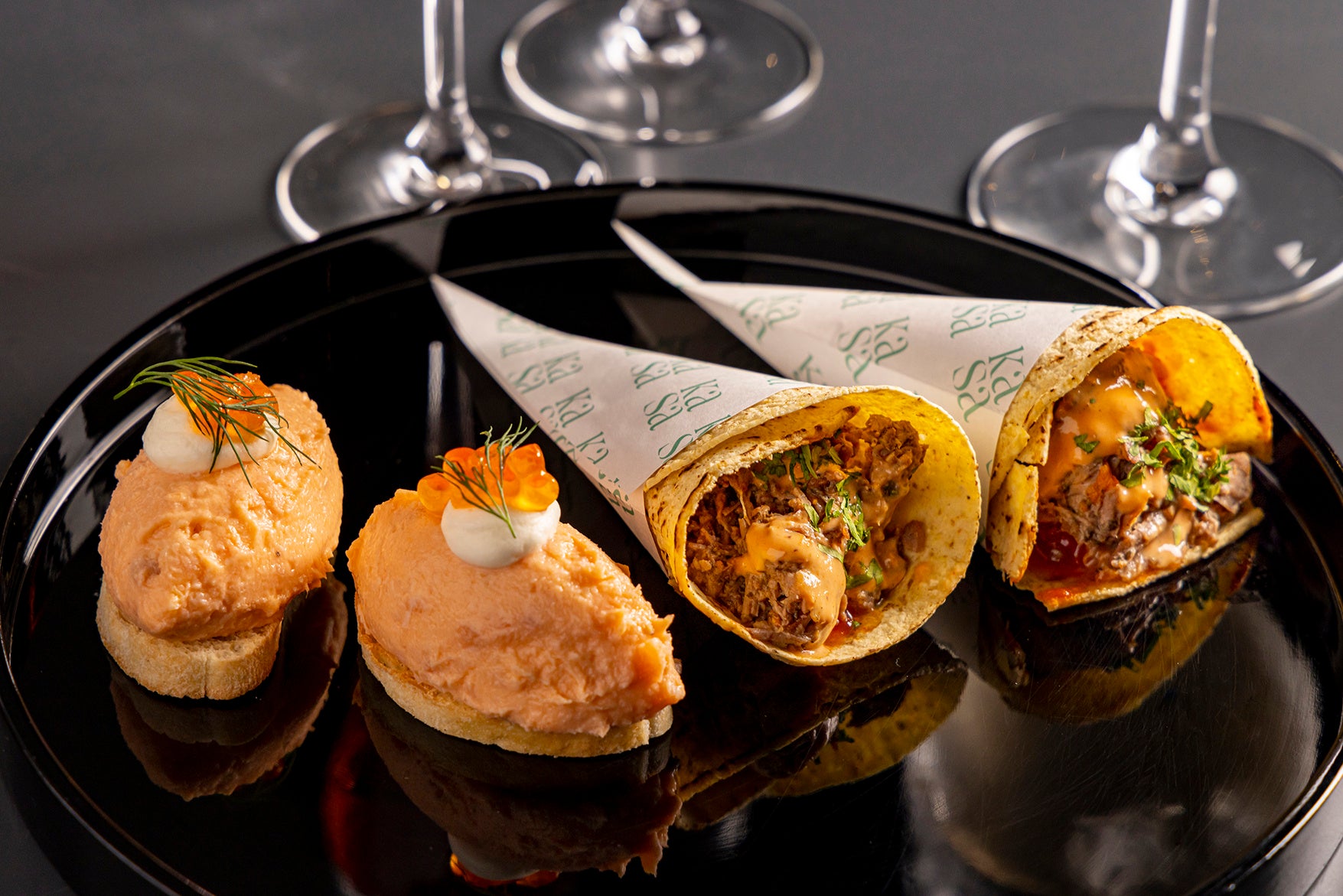 フルーツスティック /ラムタコス 夏野菜と共に / サーモンリエット サーモンキャビア添え