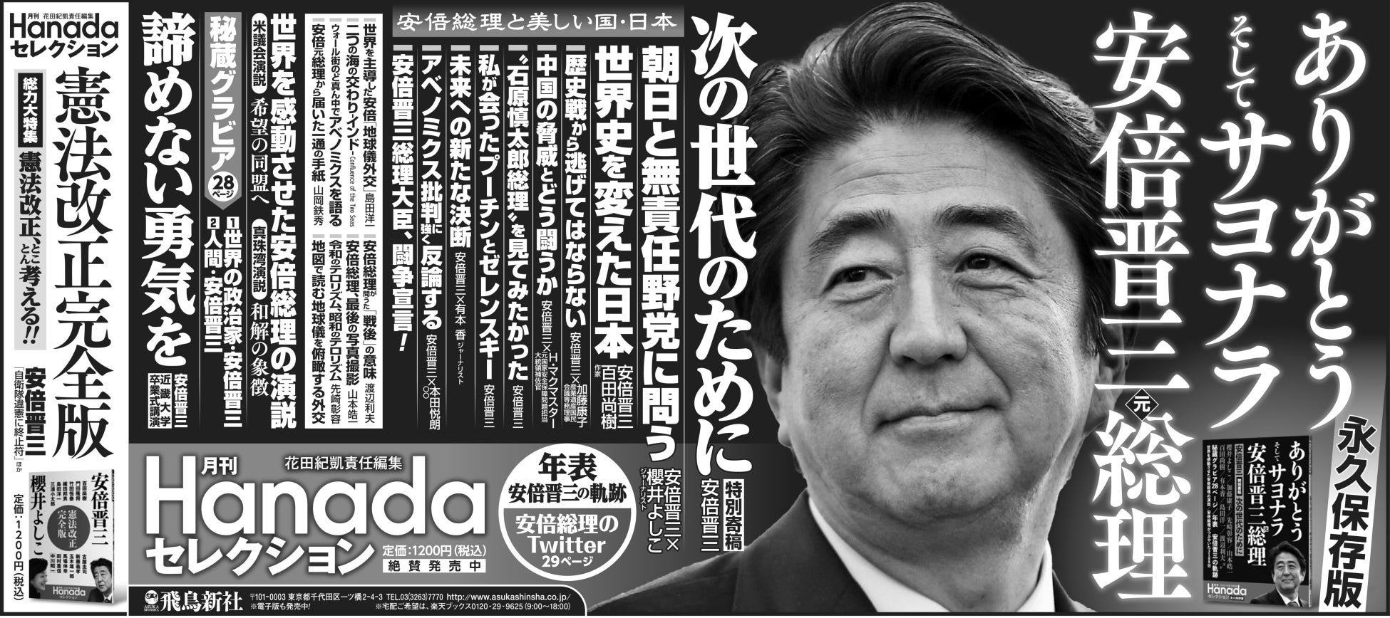 8月2日発売の月刊『Hanada』セレクション「ありがとう そしてサヨナラ 安倍晋三元総理」が発売前からAmazon総合1位(7月30日)を記録するなど、大反響!