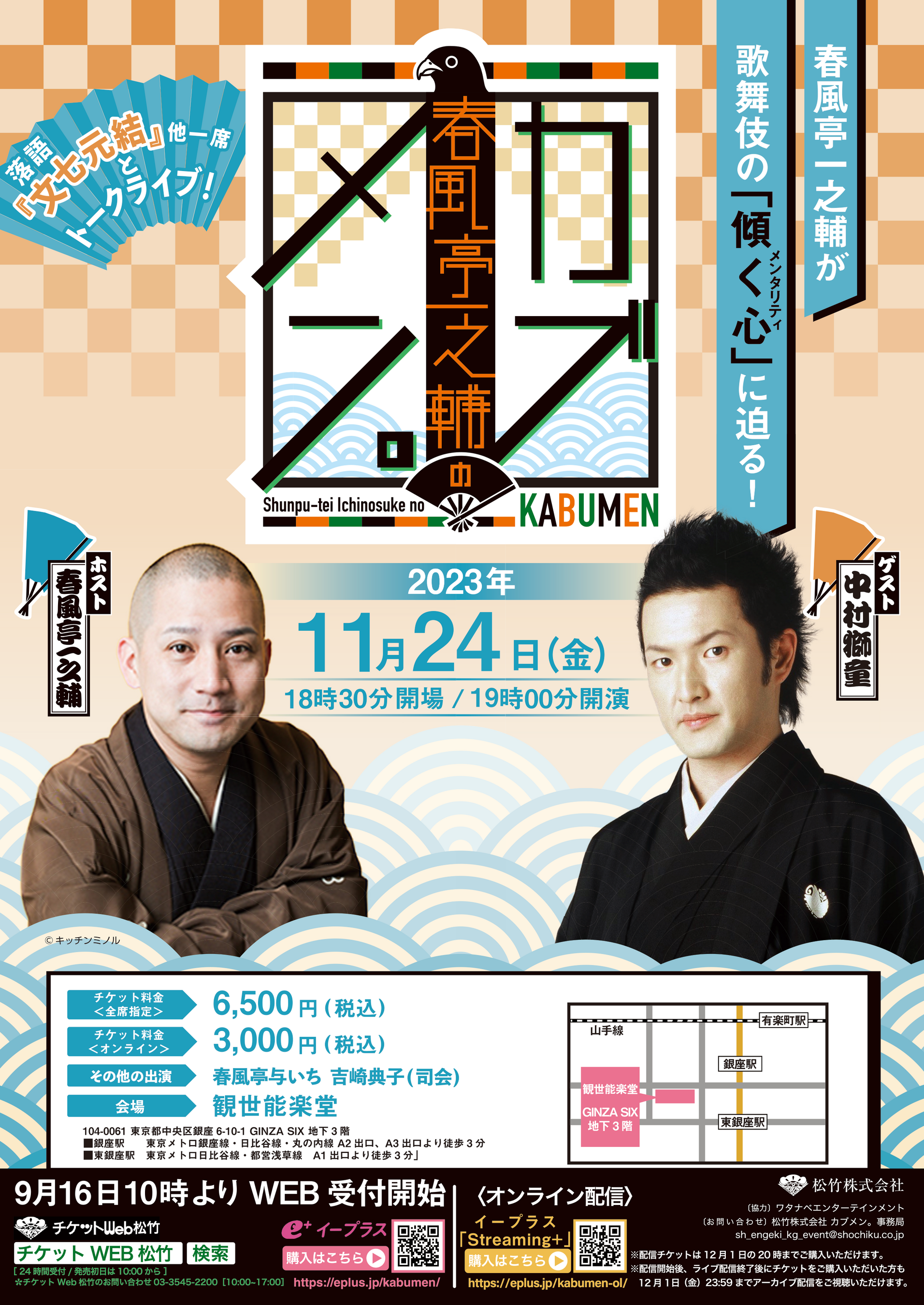 【シリーズ初のリアル開催!】「春風亭一之輔のカブメン。」第五回が決定!ゲストに歌舞伎俳優・中村獅童を迎え、11月24日(金)19時より観世能楽堂で開催。