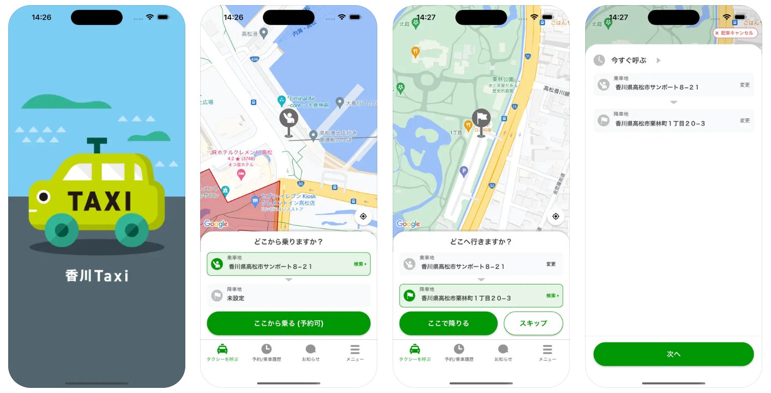 地域独自のタクシーアプリ、地域アプリ「香川Taxi」が本格運用開始