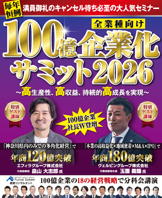 【2】船井総合研究所のコンサルタントによる「100億企業化戦略」講座