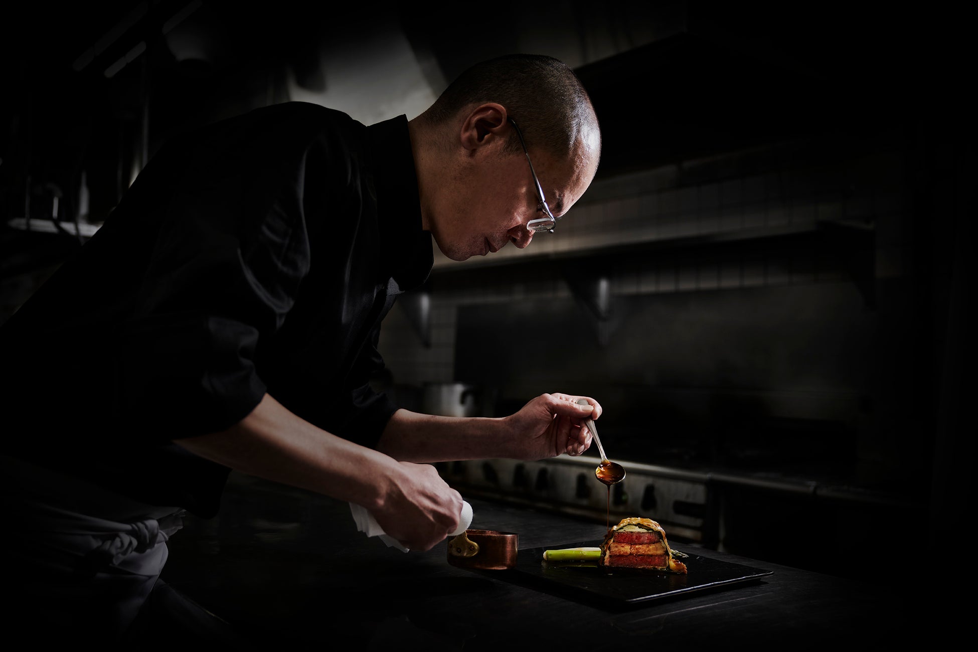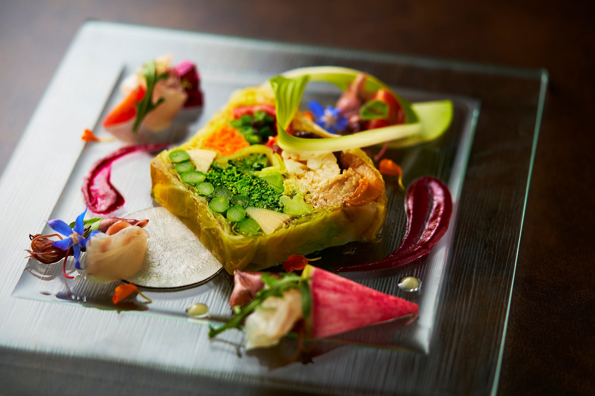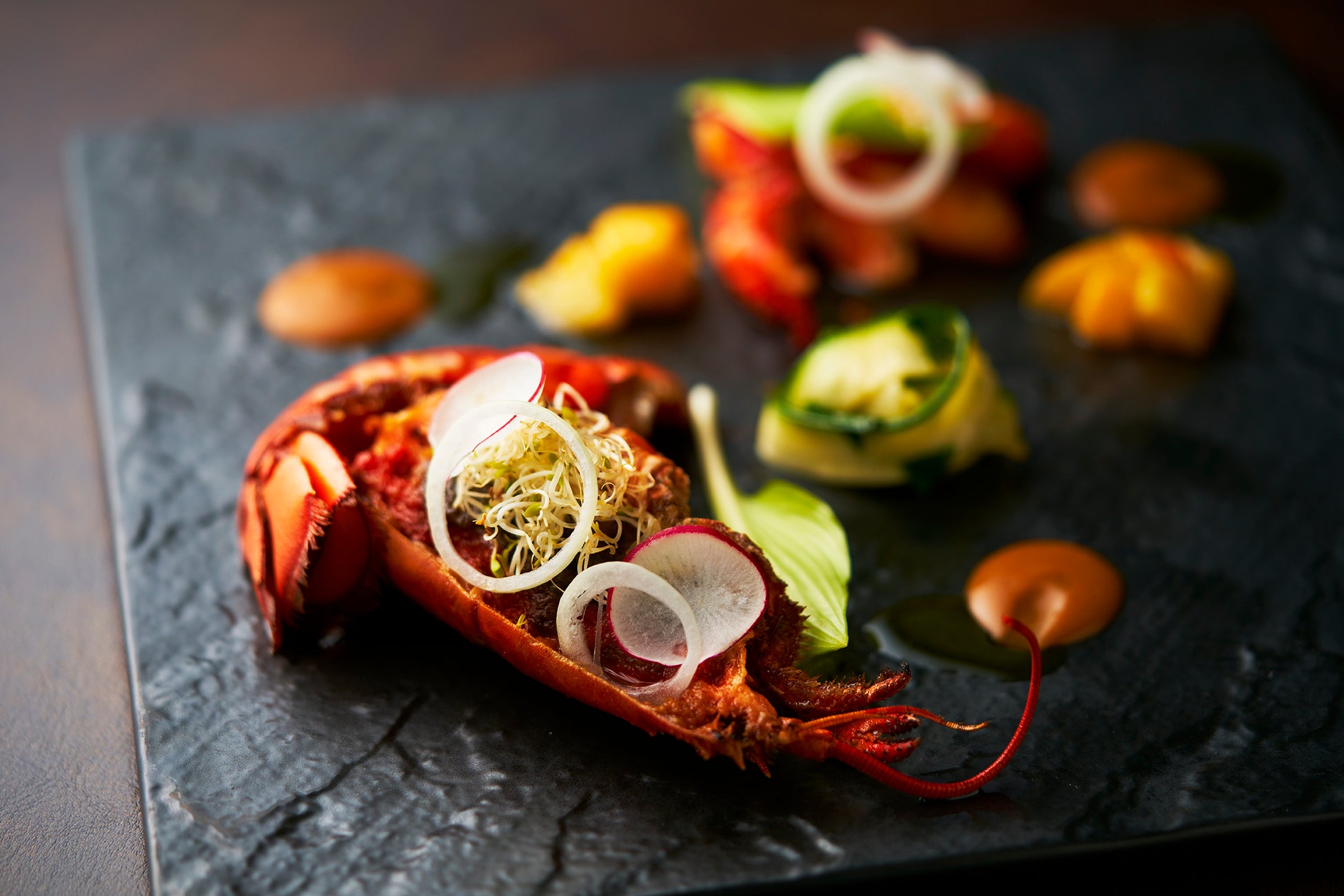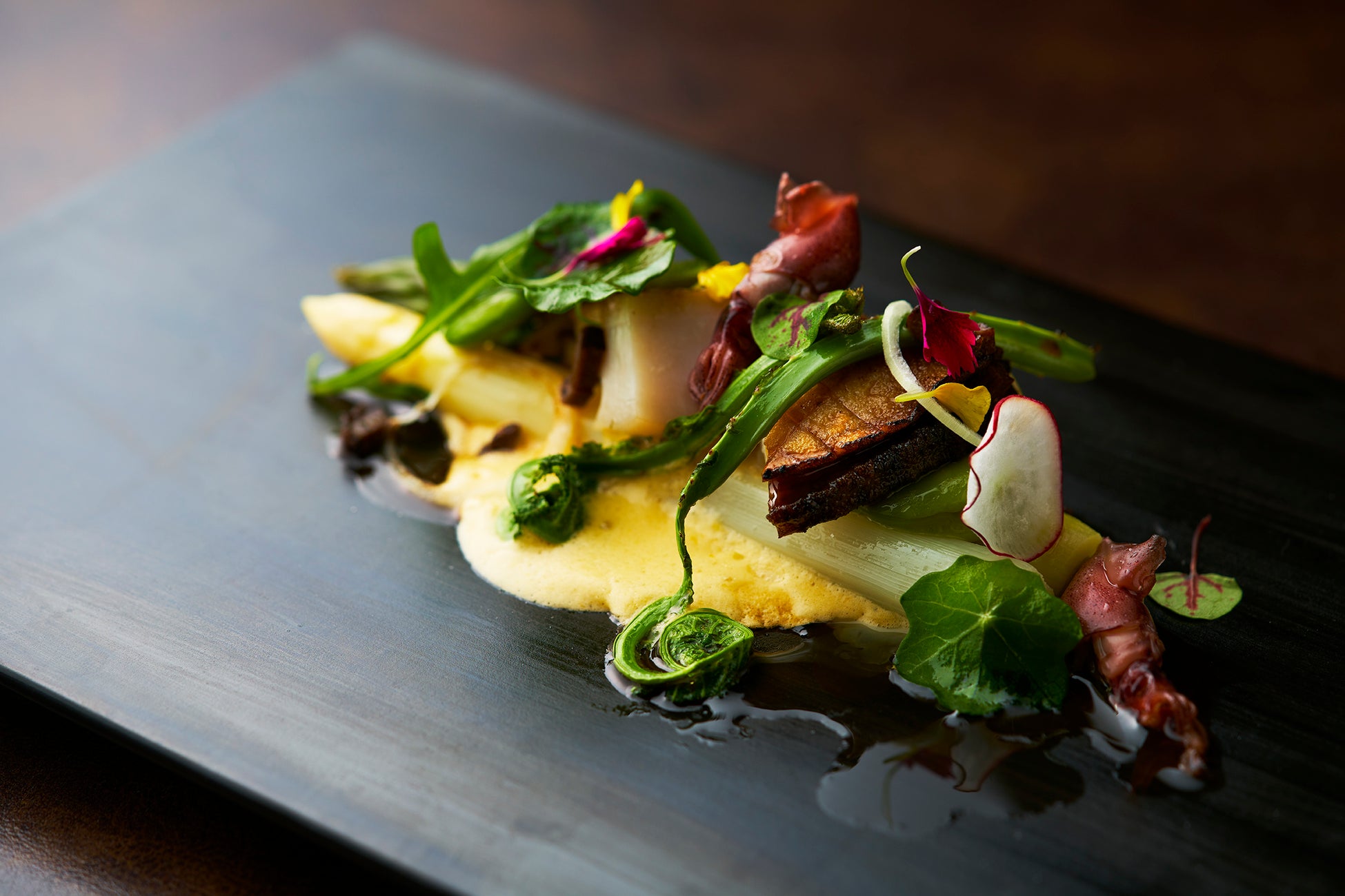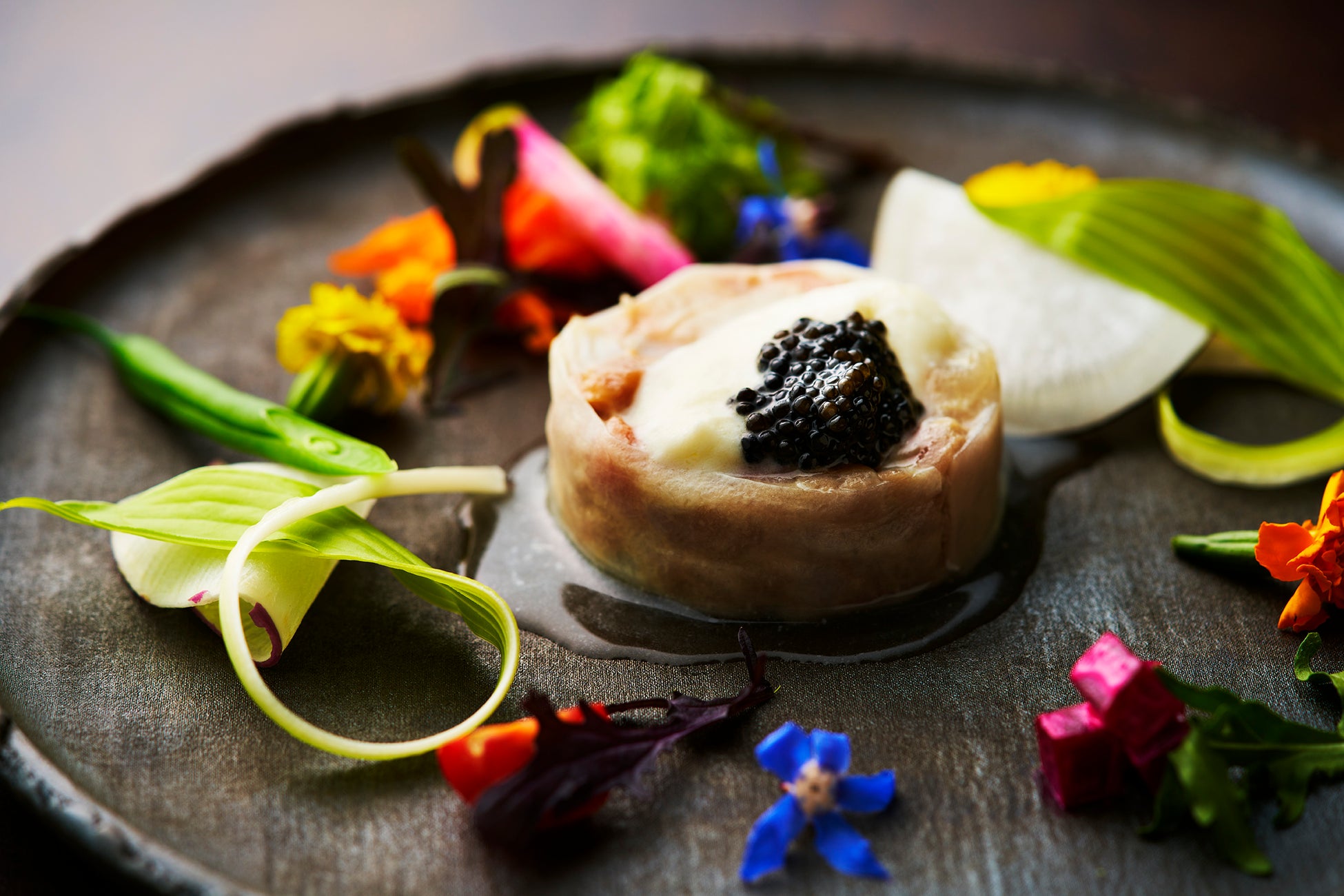 料理には、瀬戸内の昼網の魚介や、淡路島のフレッシュな野菜を中心に、日本各地から厳選した多様な食材を活用。伝統食材にとらわれすぎず、自由な発想で日本や世界の美味を組み合わせる挑戦が、シェフ山下の持ち味です。