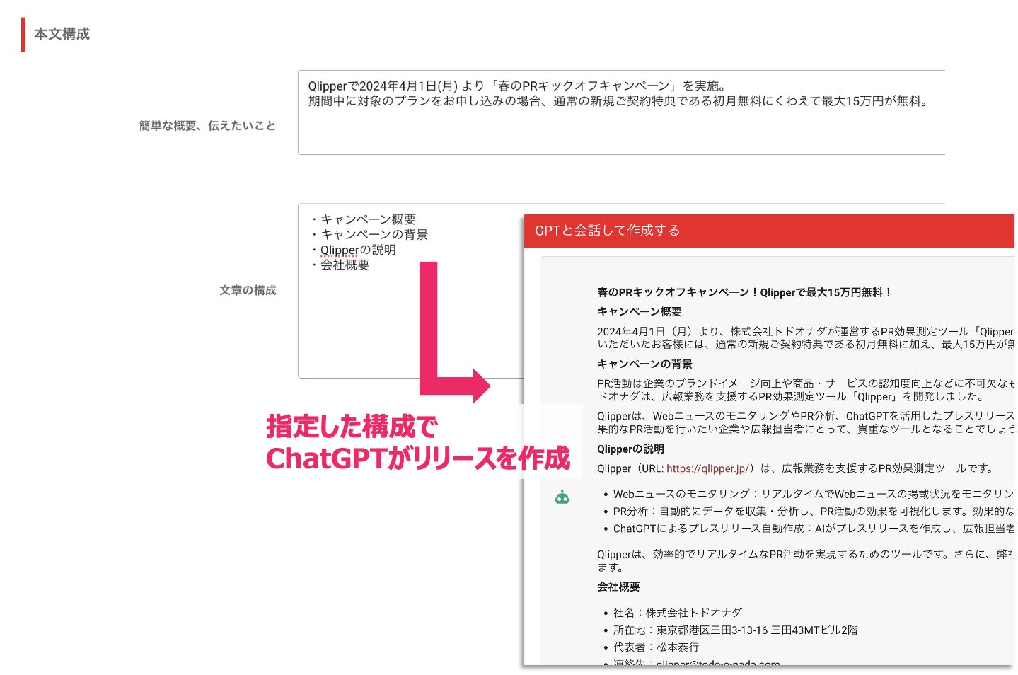 アップデート版・ChatGPTによるプレスリリース生成