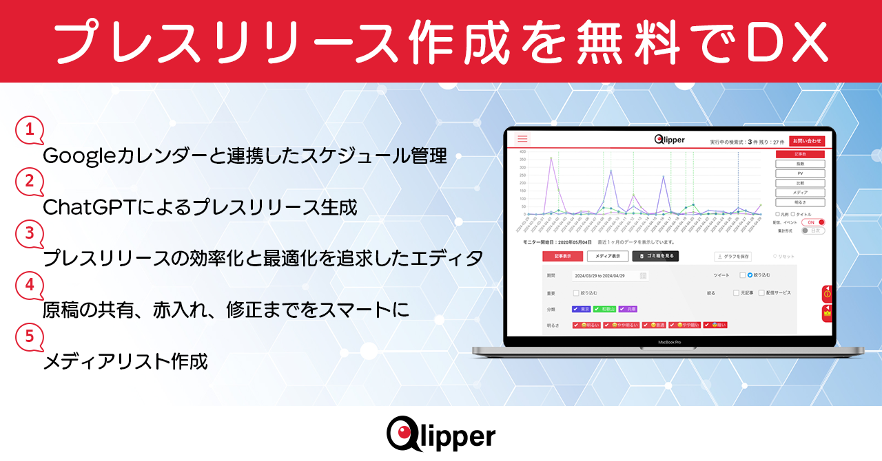 プレスリリース作業のDXを実現する5つの機能、無料でPR効果測定サービスQlipperが提供開始