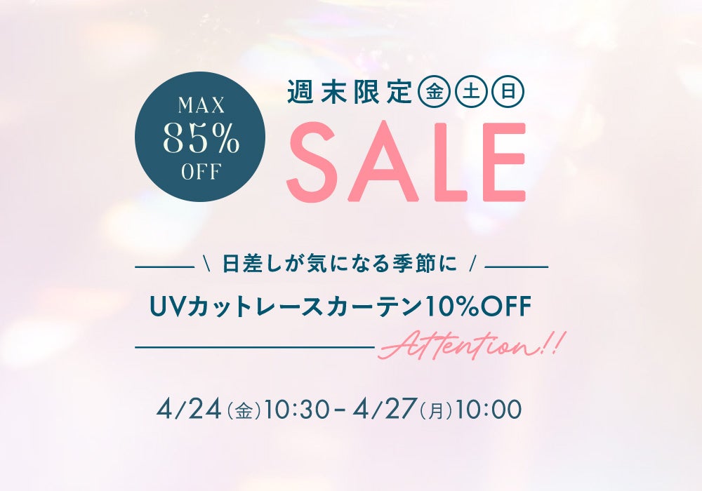 4月24日(金)10時半から開催!『パーフェクトスペースカーテン館 週末セール』UVカットレースカーテン10%OFF!
