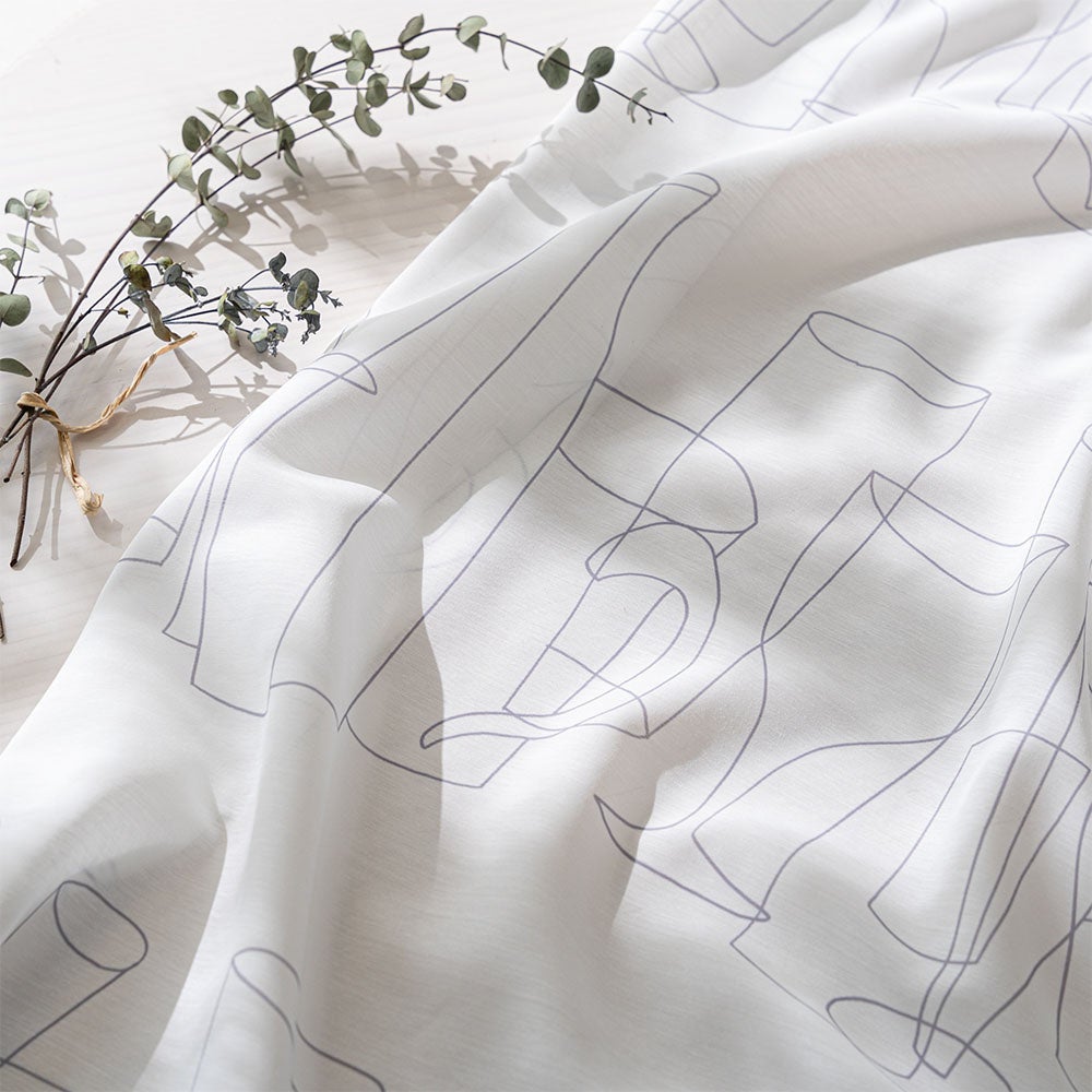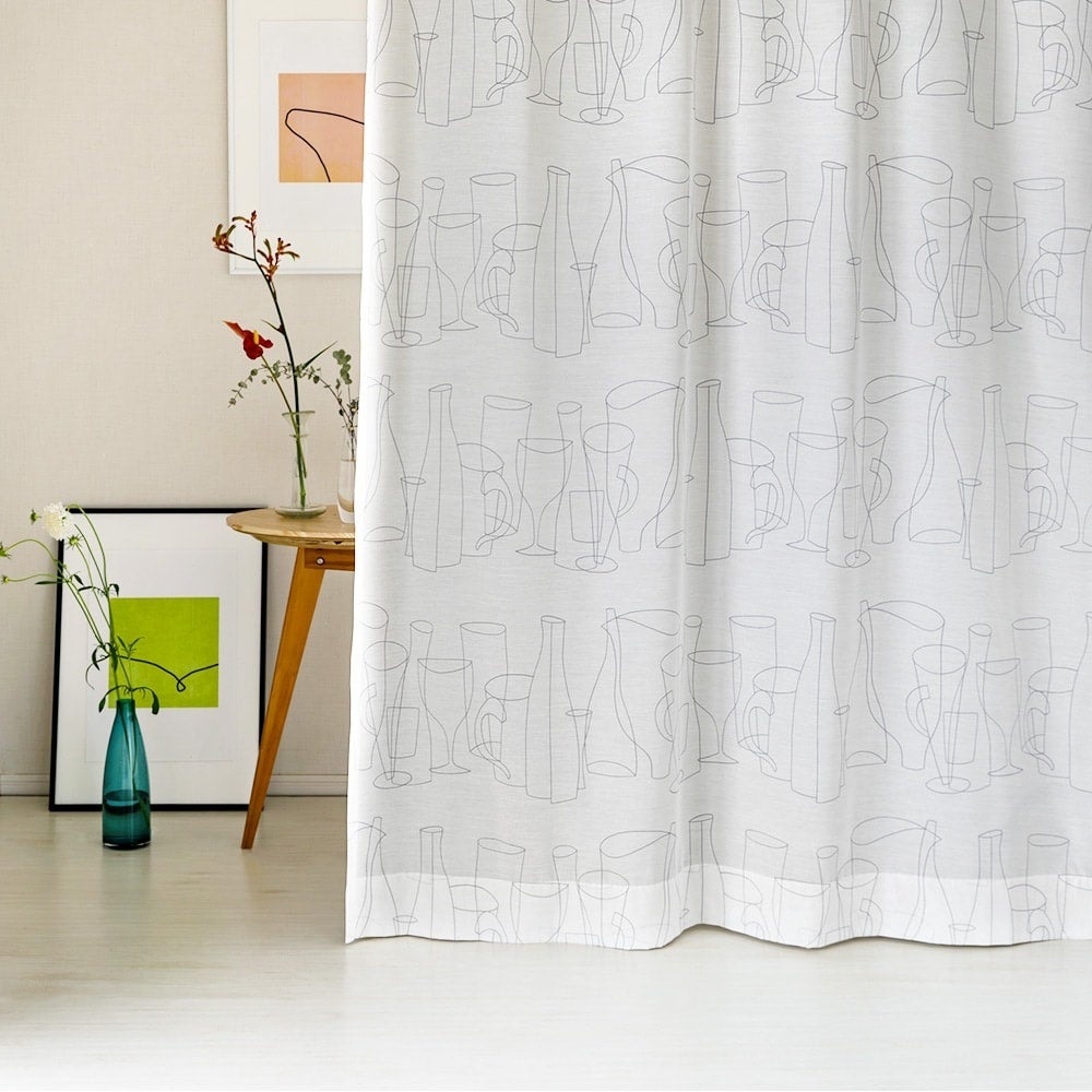UVカット率78.9%・遮熱率29.7%・洗濯可能といった機能を備え、デザイン性と実用性を兼ね備えた一枚。北欧アートをプリントした、リネンライクの可愛いレースカーテン<ボトルレース ホワイト>は、眺めているだけでも楽しくなるようなふわっと優しい雰囲気で、さりげなくアートを飾りたい方にぴったりです。