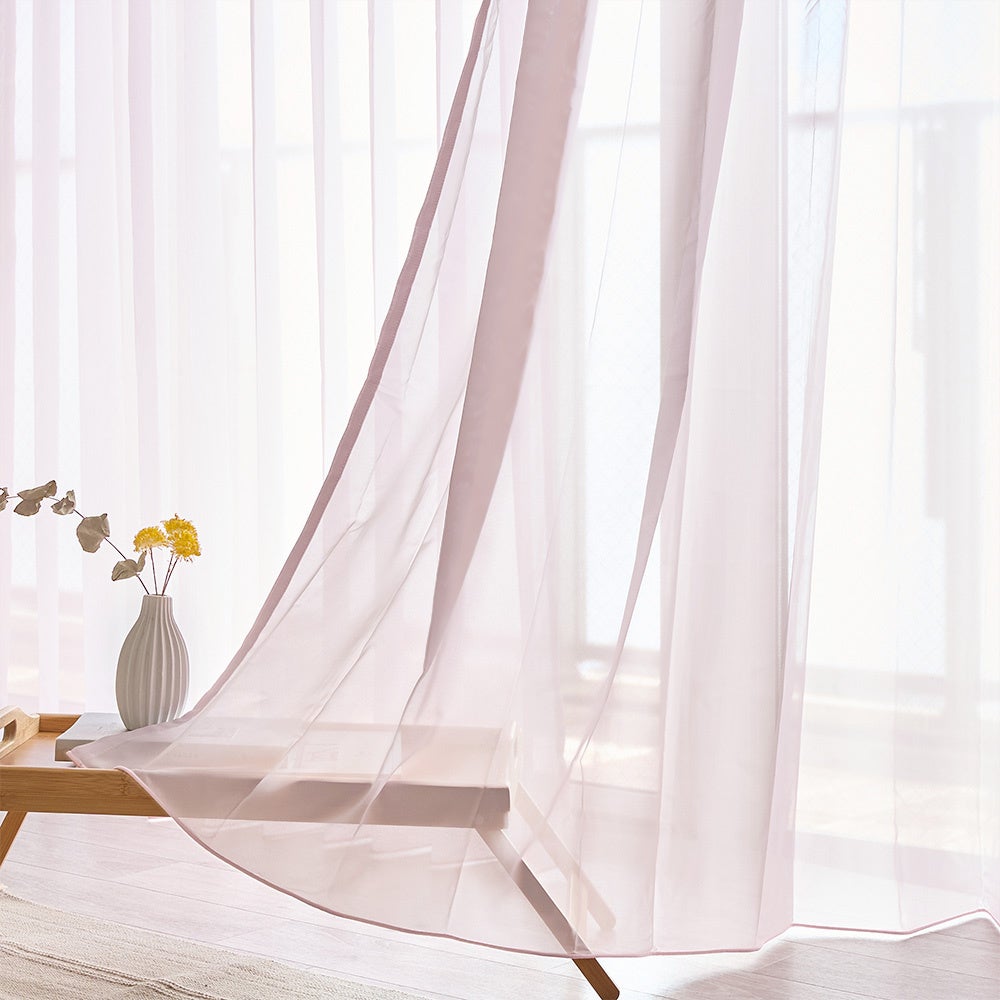当店で一番人気の遮像レースカーテン「ふわりぃ」に、やさしいニュアンスカラー5色が加わった<ふわりぃ ニュアンス>。UVカット率80.7%をはじめ、遮像や採光、遮熱・保温、防炎、洗濯可能など多彩な機能を備えています。とろけるような柔らかな生地と高い機能性はそのままに、裾巻きロック仕様とカラー巻きロックでオーダーカーテンならではの美しい仕立てを実現しました。見た目の可愛らしさと快適さを両立した一枚です。