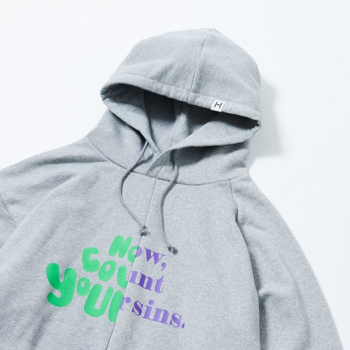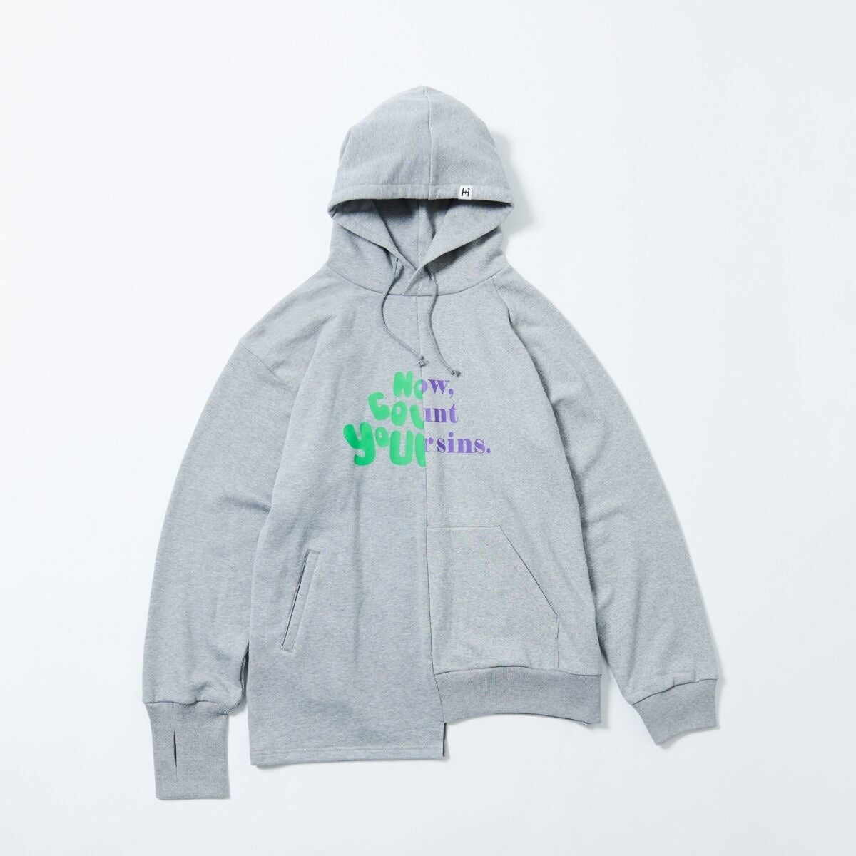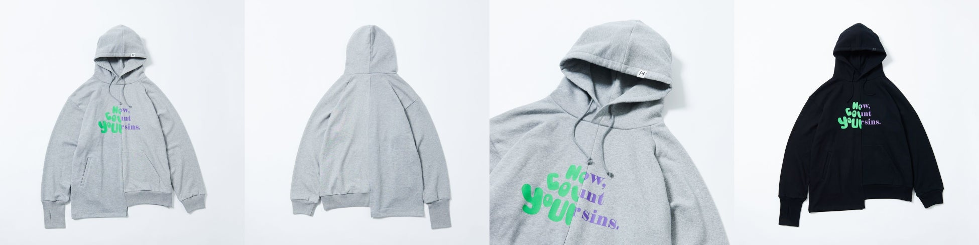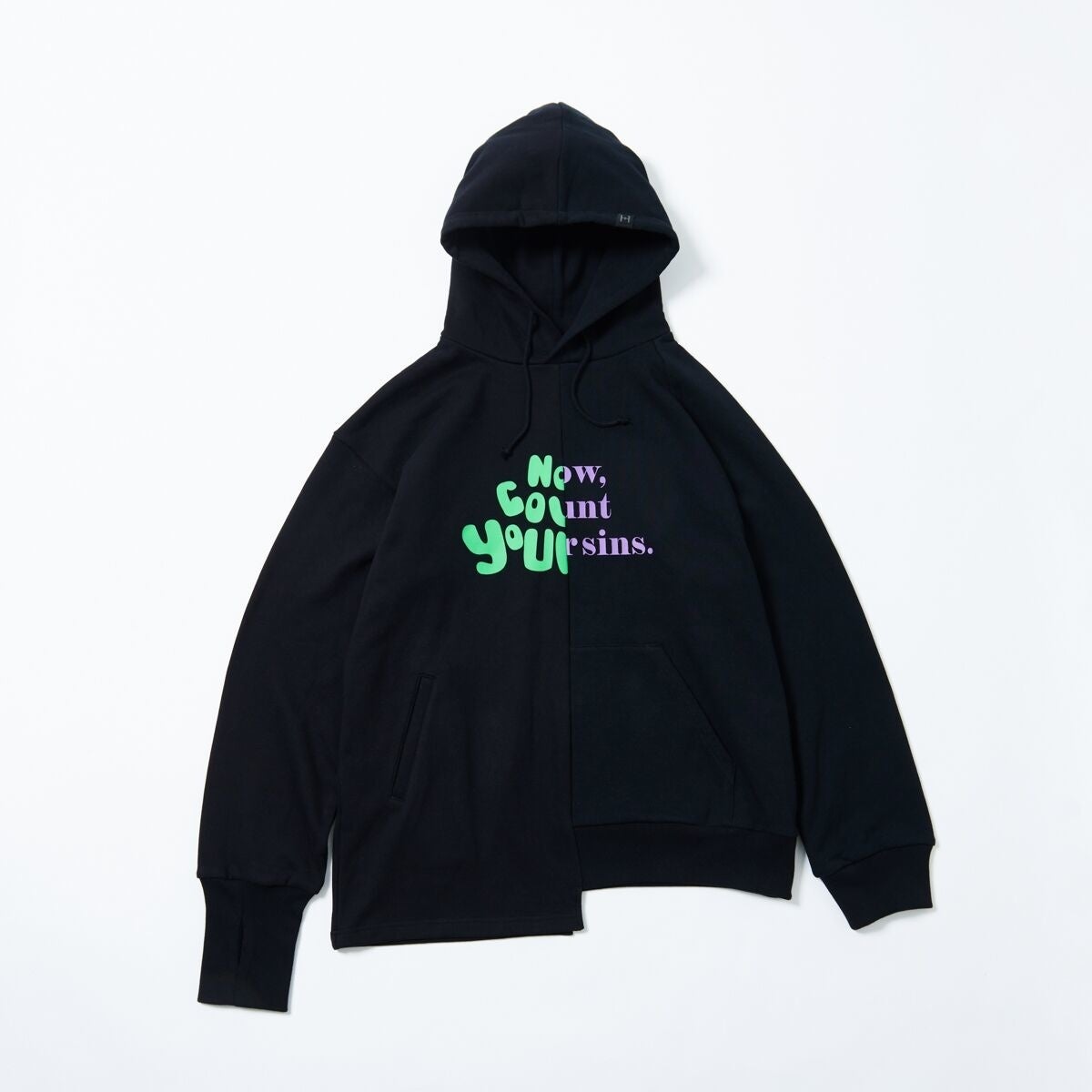 目を引くプリントは「Now, count your sins.」(さぁ、お前の罪を数えろ。)の文字を左右異なるフォントで表現。