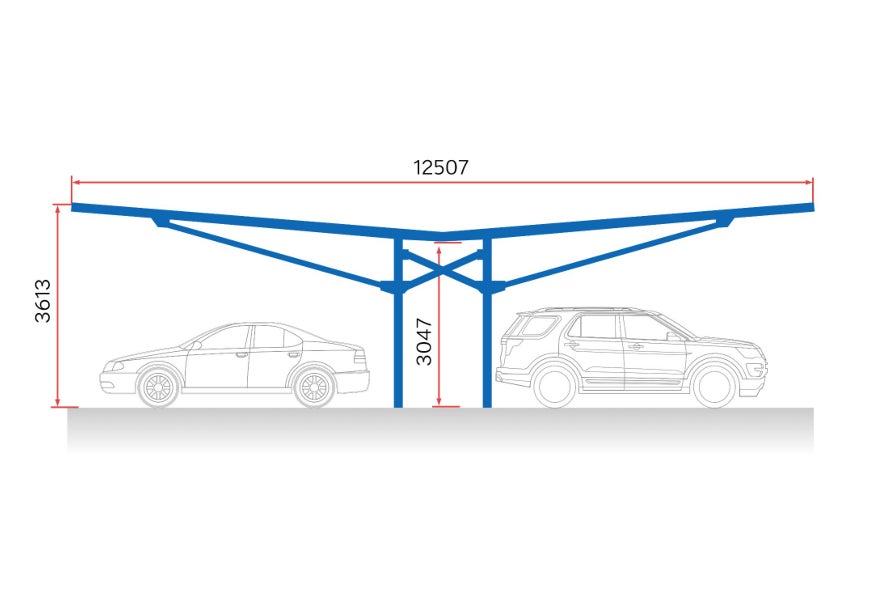ハイルーフタイプの車でも軒先が視界に入らず見通しが良い事も特徴です。特にホームセンターなどでは長い資材の搬入時にソーラーカーポートが邪魔になりません。