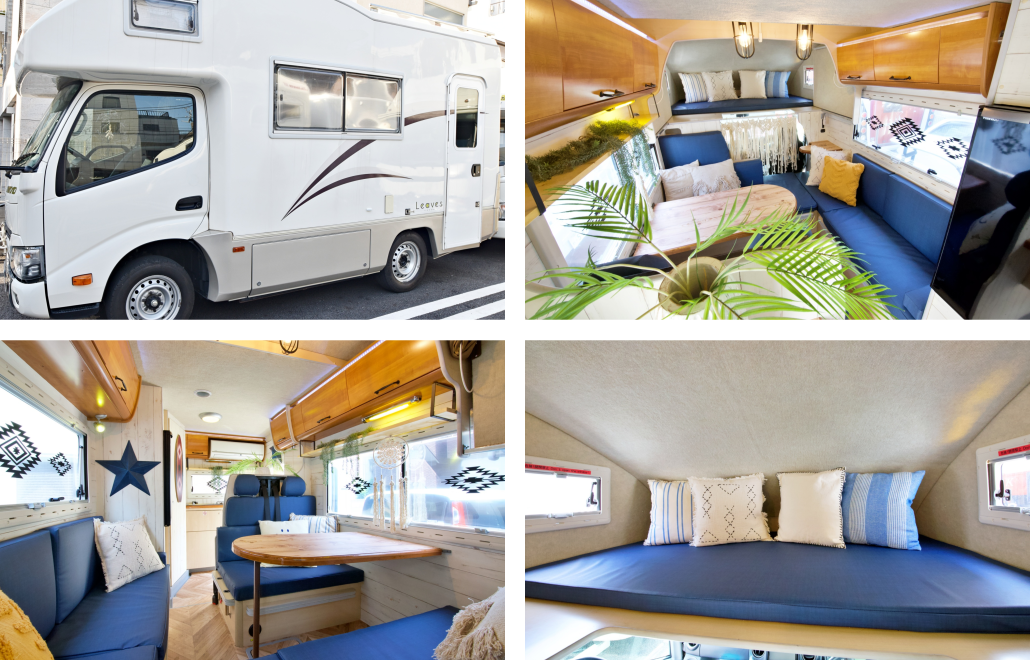 キャンピングカーの内装をプロのコーディネーターによって可愛く・かっこよくリフォームしていますので、まるで家にいるかのような特別な空間でのドライブが楽しめます。