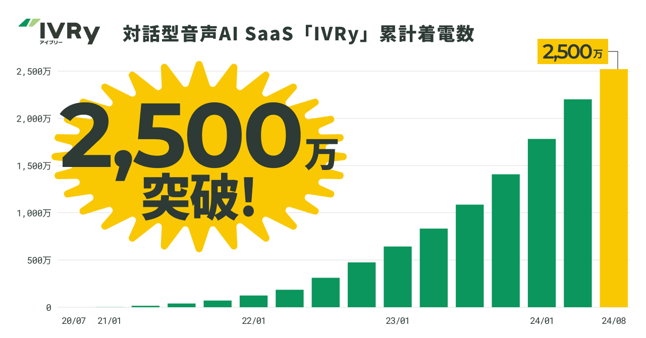 対話型音声AI SaaSのIVRy(アイブリー)、累計着電数2,500万件を突破