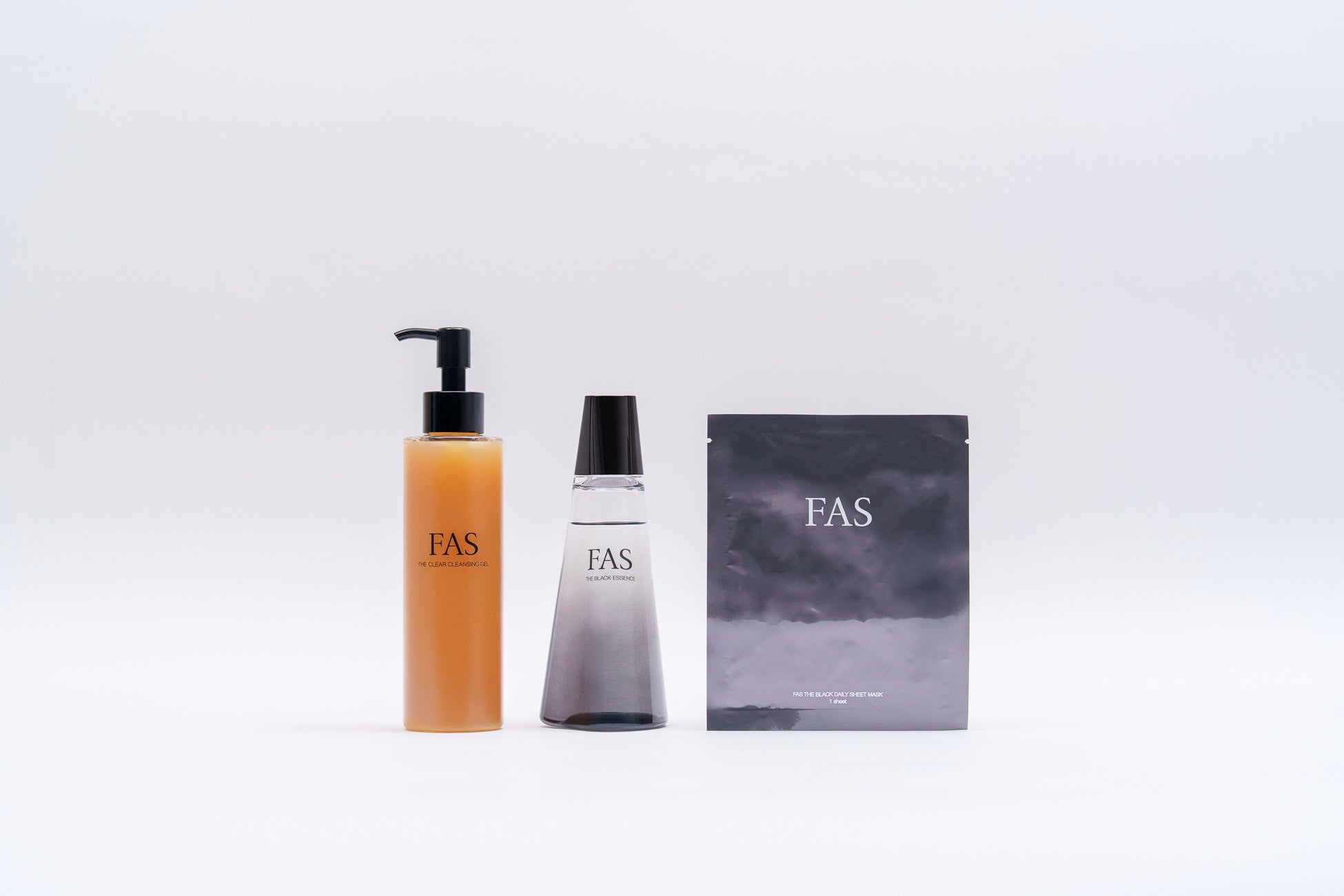 FAS ザ クリア クレンジングジェル (現品・180mL) FAS ザ ブラック エッセンス (現品・120mL) FAS ザ ブラック デイリー シートマスク (1枚) |