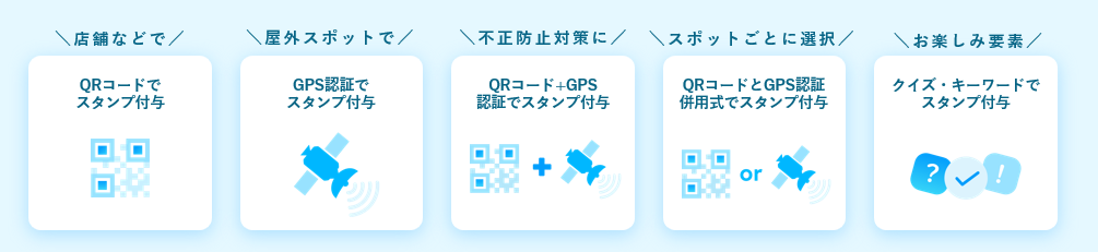 企画やスポットに応じて様々なスタンプ付与方法を選択できます。