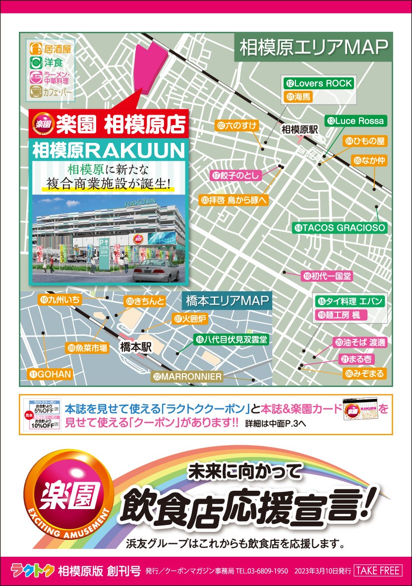 新年度といえば歓送迎会や年度打ち上げなど、なにかとイベントが多い時期。そんな飲み会シーズンにぴったりなフリーペーパー『ラクトク相模原 創刊号』が発行され、お得な情報やクーポンが盛りだくさんと話題に!