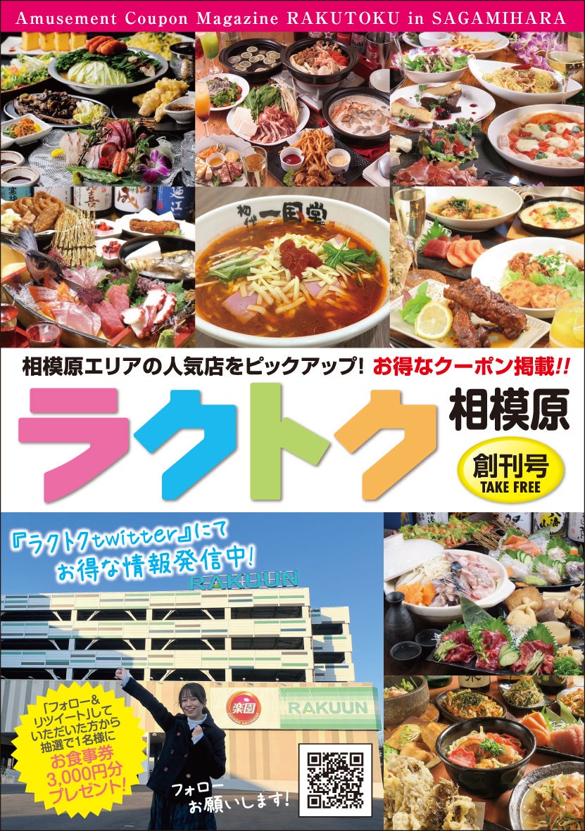 今回は「ラクトク相模原 創刊号」発行を記念して、飲食店クーポンマガジン『ラクトク』編集部公式Twitterをフォロー&リツイートした人の中から抽選で3,000円分のお食事券プレゼントキャンペーンも実施!