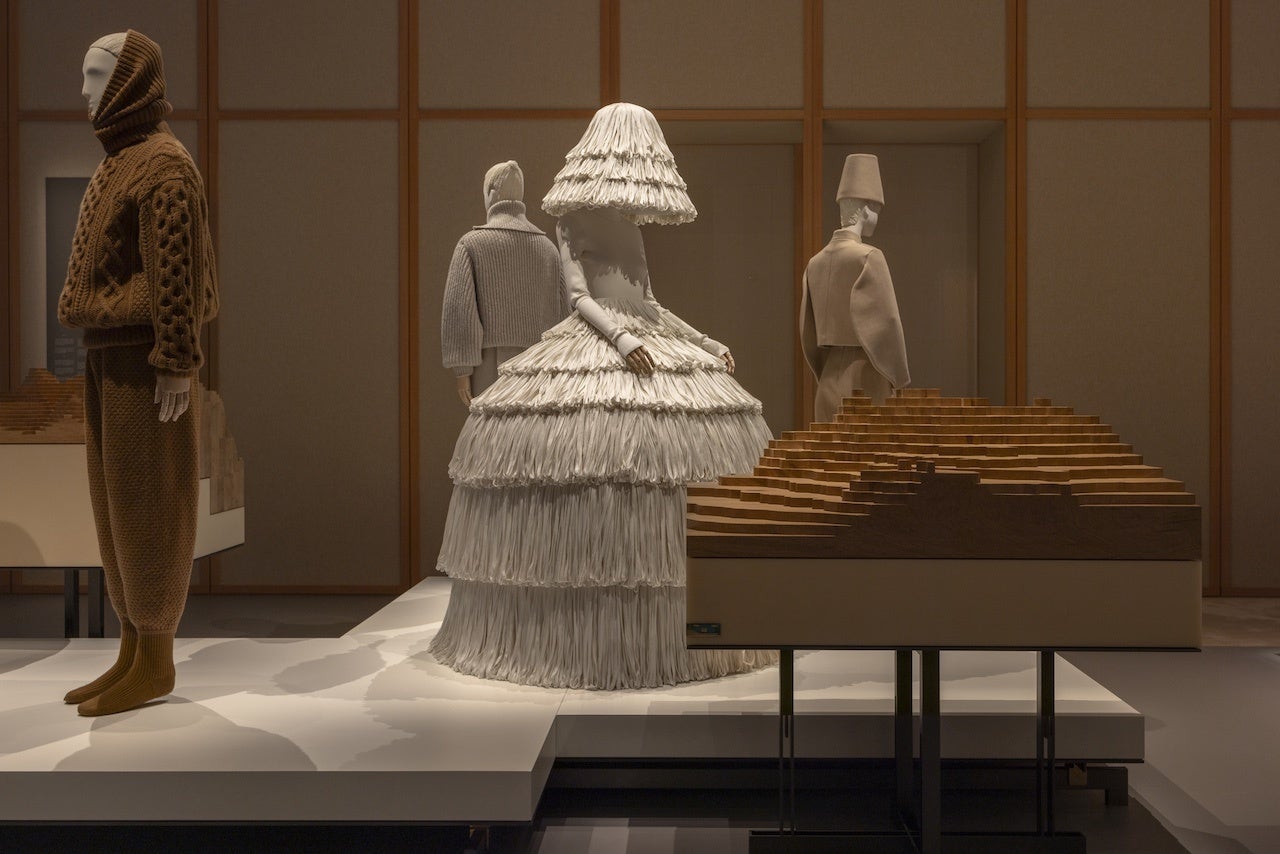 ロロ・ピアーナの卓越性の追求には、最高品質の原材料を探す旅が重要な役割を果たします。この距離の概念は、ロロ・ピアーナが貴重な原材料を調達し、素晴らしいウェアを生み出している繊維の産地、ニュージーランド、アンデス、フランス、日本、中国の風景のミニチュアの展示を通して、遠くから見ているかのように表現されています。ギャラリーのあちこちに、この展覧会のために特別に製作された33のアンサンブルが展示されており、その製作に欠かせない歴史、風景、ノウハウとの対話をお楽しみいただけます。