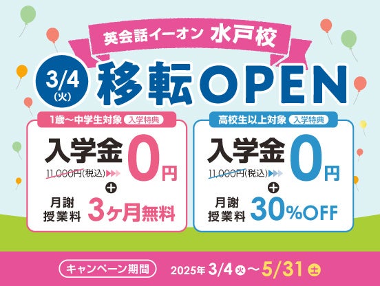英会話教室を運営する株式会社イーオン(本社:東京都新宿区、代表取締役社長:重野卓、以下「イーオン」)は、2025年3月4日にイーオン水戸校を移転オープンいたします。