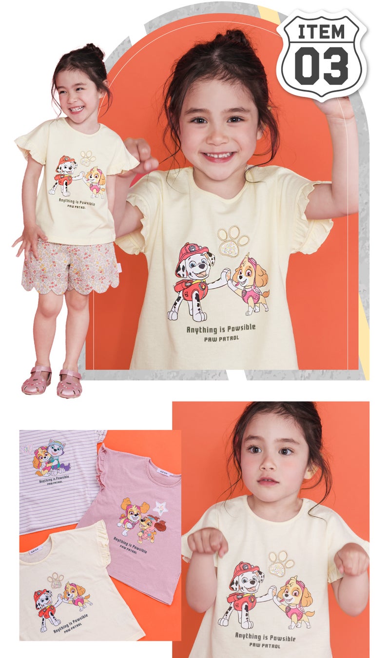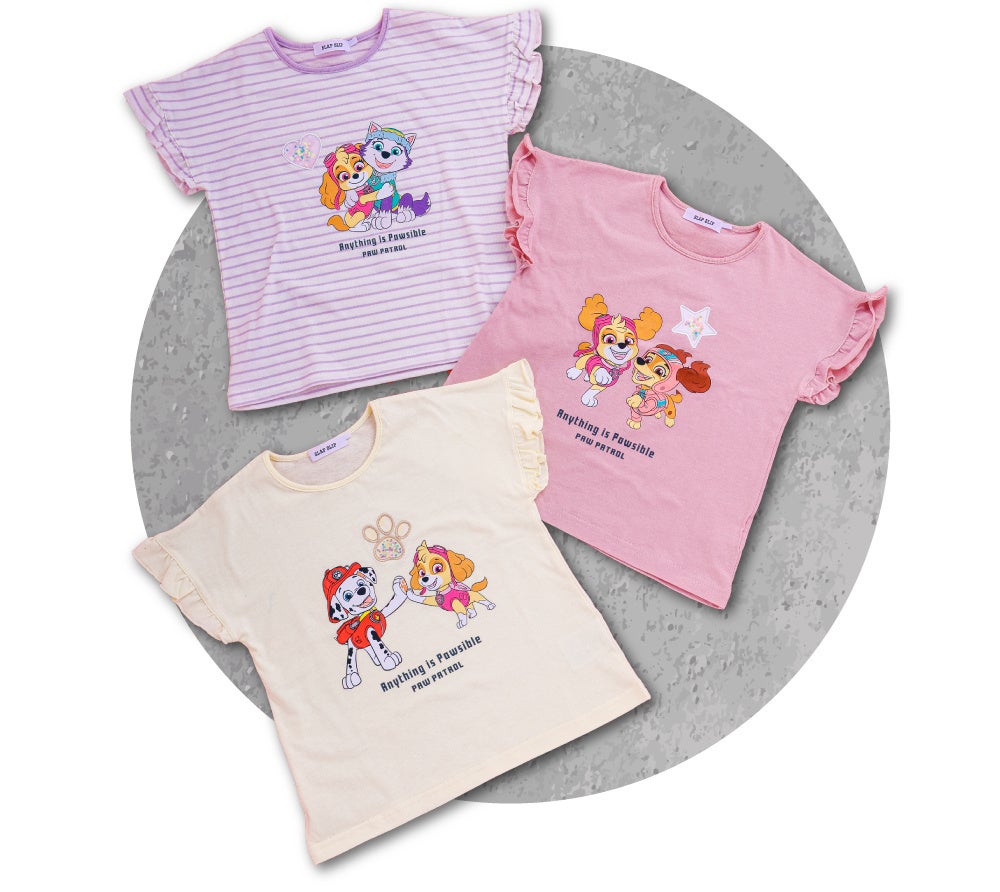 POPで元気な「パウ・パトロール」のキャラクターと、ガーリーなデザインがおしゃれな一着です。ぜひお気に入りを見つけてみてください♪