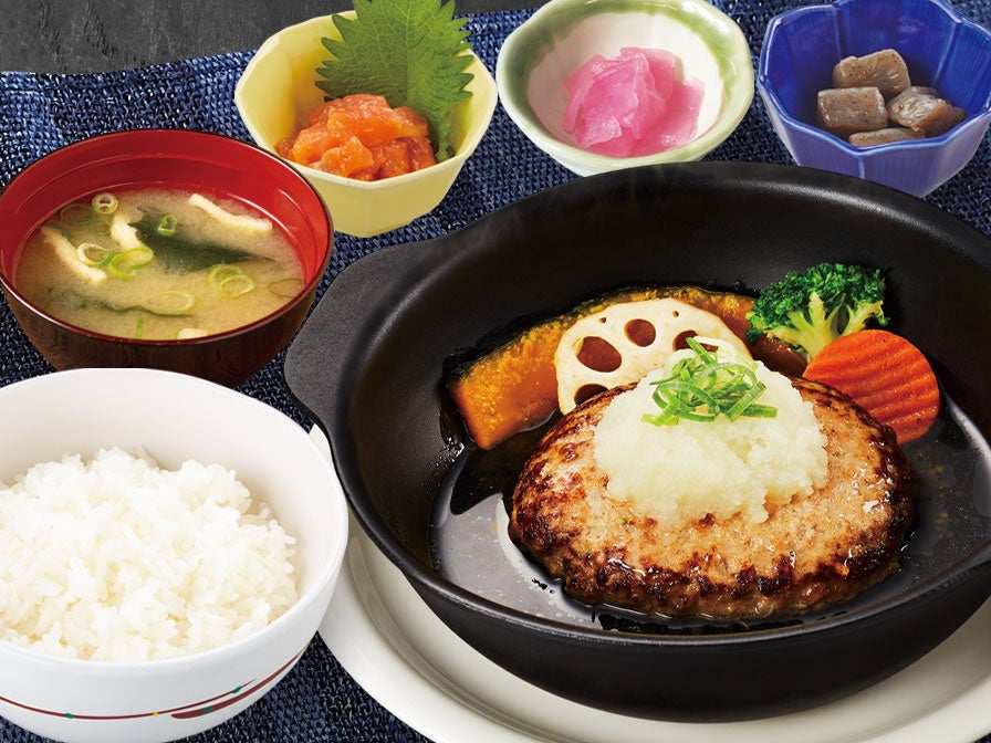 トマト&オニオンオリジナルのハンバーグを大根おろしとおだしでお召し上がりください。