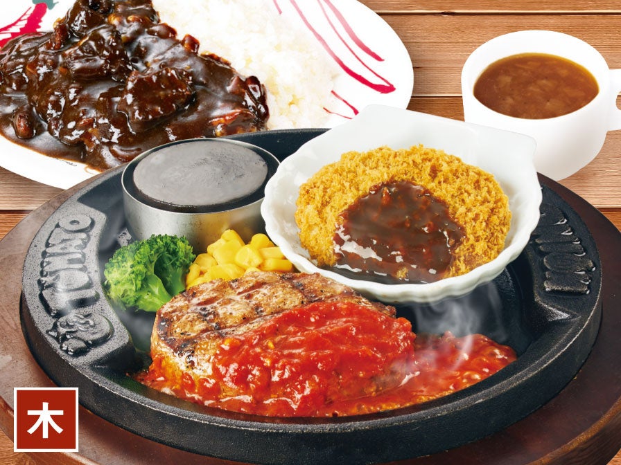 ●木曜日「トマト弾丸ハンバーグ&“焼肉屋さんの”カルビコロッケ」