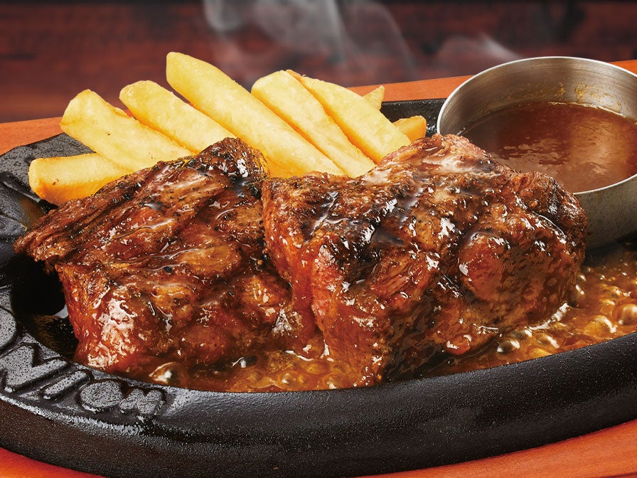 ファミリーレストランでは珍しい、店内手切りのステーキが登場
