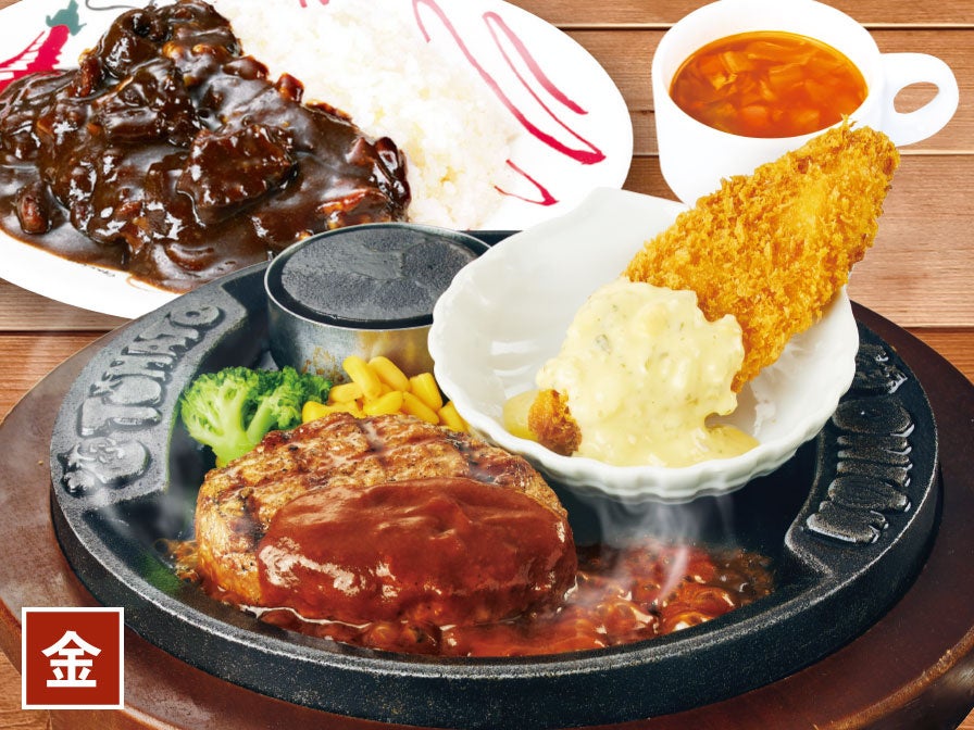 トマト&オニオン名物の「“牛肉100%!!”弾丸ハンバーグ」が日替わりランチメニューに初登場。