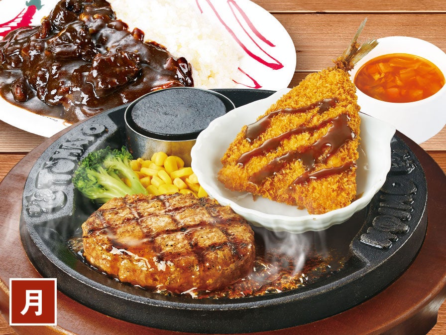 ●月曜日「てりやき弾丸ハンバーグ&アジフライ」