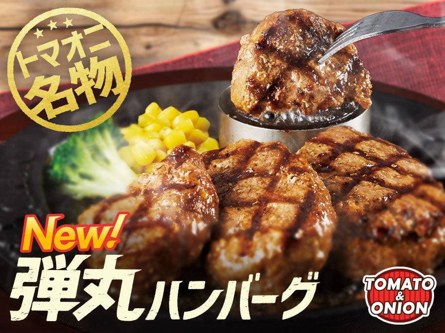 トマト&オニオン名物「“牛肉100%!!”弾丸ハンバーグ」のメニューをリニューアルいたしました。