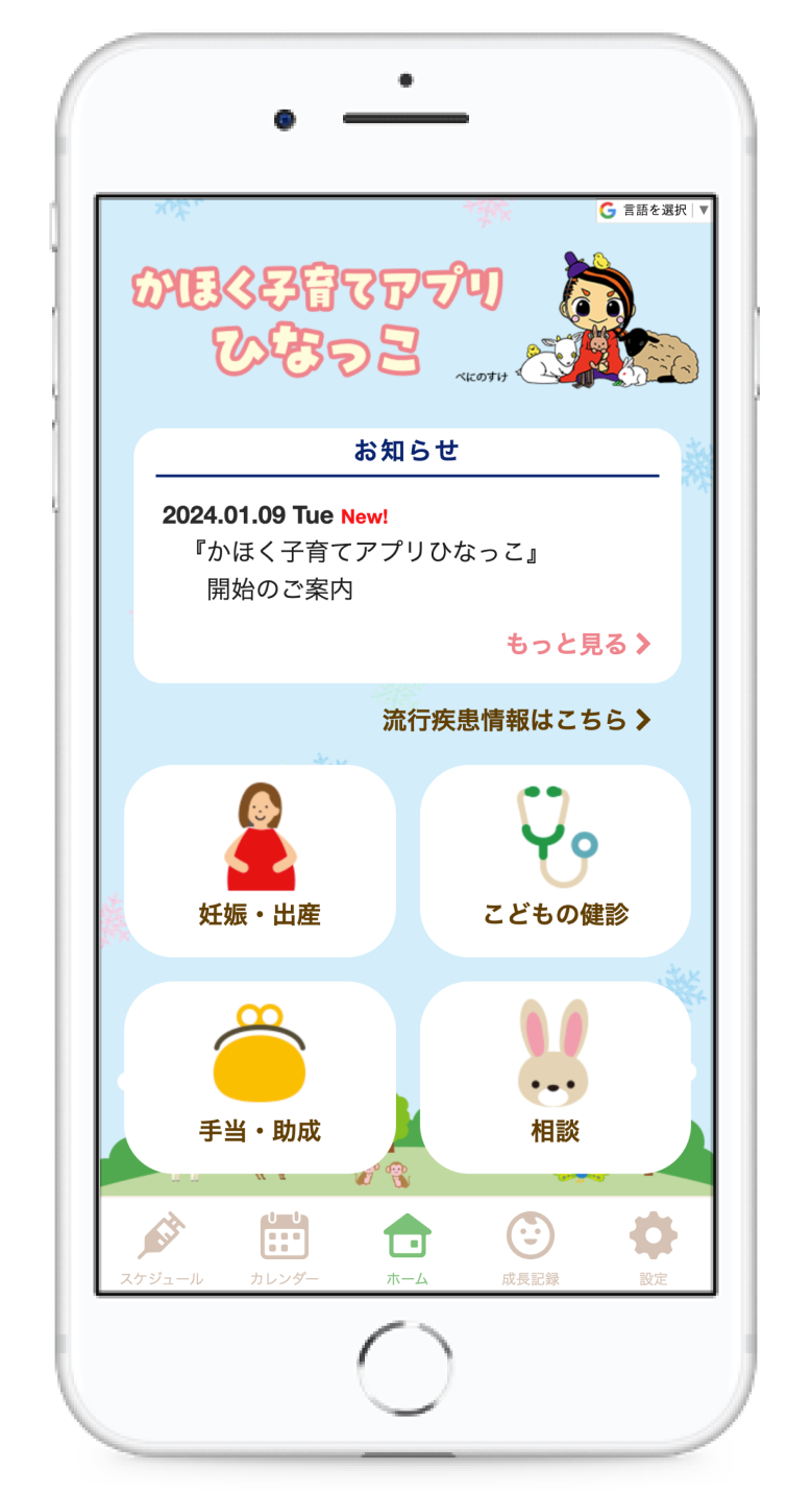 妊婦・子育て家庭に寄り添う「伴走型相談支援」のより一層の充実を図るため、「出産・子育て応援交付金(*)」を活用し、山形県内2自治体(川西町・南陽市)でも取り入れられている子育て支援アプリ「子育てモバイル」を導入する運びとなりました。河北町オリジナルのデザインを施し、子育て支援アプリ「かほく子育てアプリひなっこ」として提供いたします。