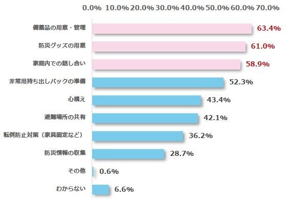 家庭内の防災対策として不十分に感じるもの最多回答は「備蓄品の用意・管理」