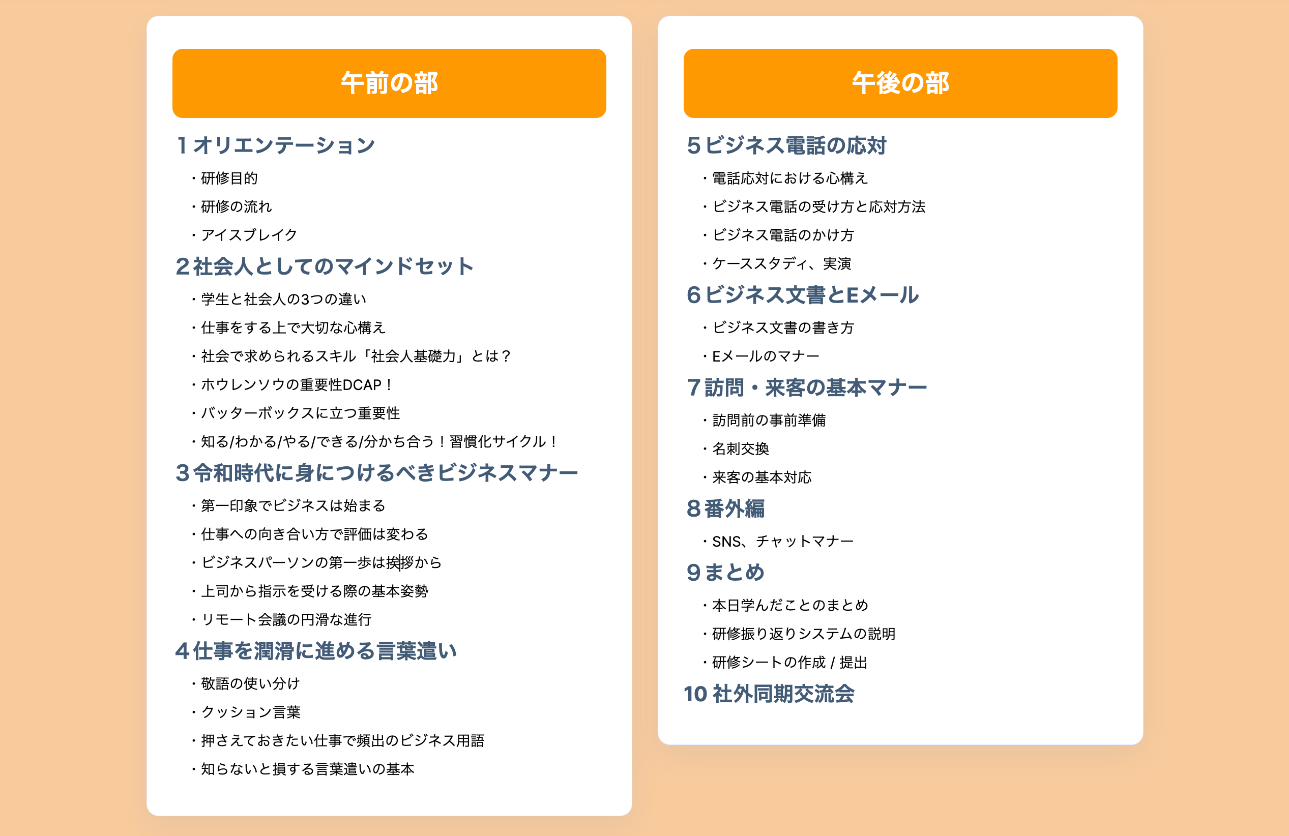 採用人数の少ないベンチャー企業だからこその「研修コスト」「ビジネスマナー教育」「同期形成」の悩みを解消し、定着率アップを図ります。