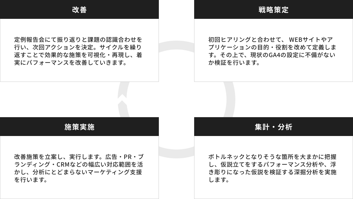 こういった企業の課題に応えるべく、この度オロでは、GA4の分析・改善プランを正式に提供開始いたしました。移行して終わりではなく、本来の目的であるWebサイトやアプリケーションの改善まで、一気通貫してサポートいたします。