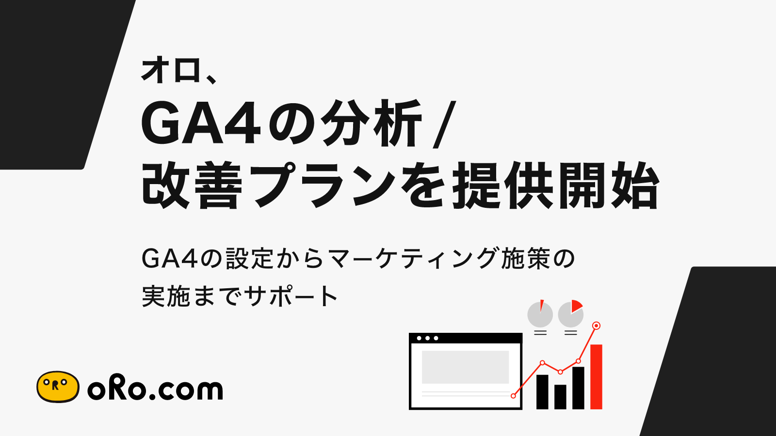マーケティング戦略の立案から広告・PR戦略、プロモーション企画、CRM、マーケティング業務の運用サポートなどワンストップフルサービスで手掛ける株式会社オロ(本社:東京都目黒区 代表取締役社長:川田篤 以下 オロ)は、Googleアナリティクス4プロパティ(以下GA4)の分析・改善プランを正式にメニュー化し、提供開始したことをお知らせいたします。