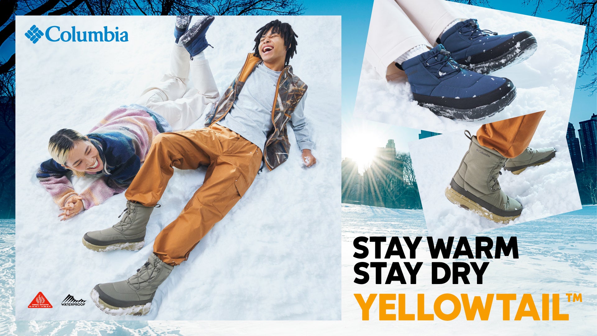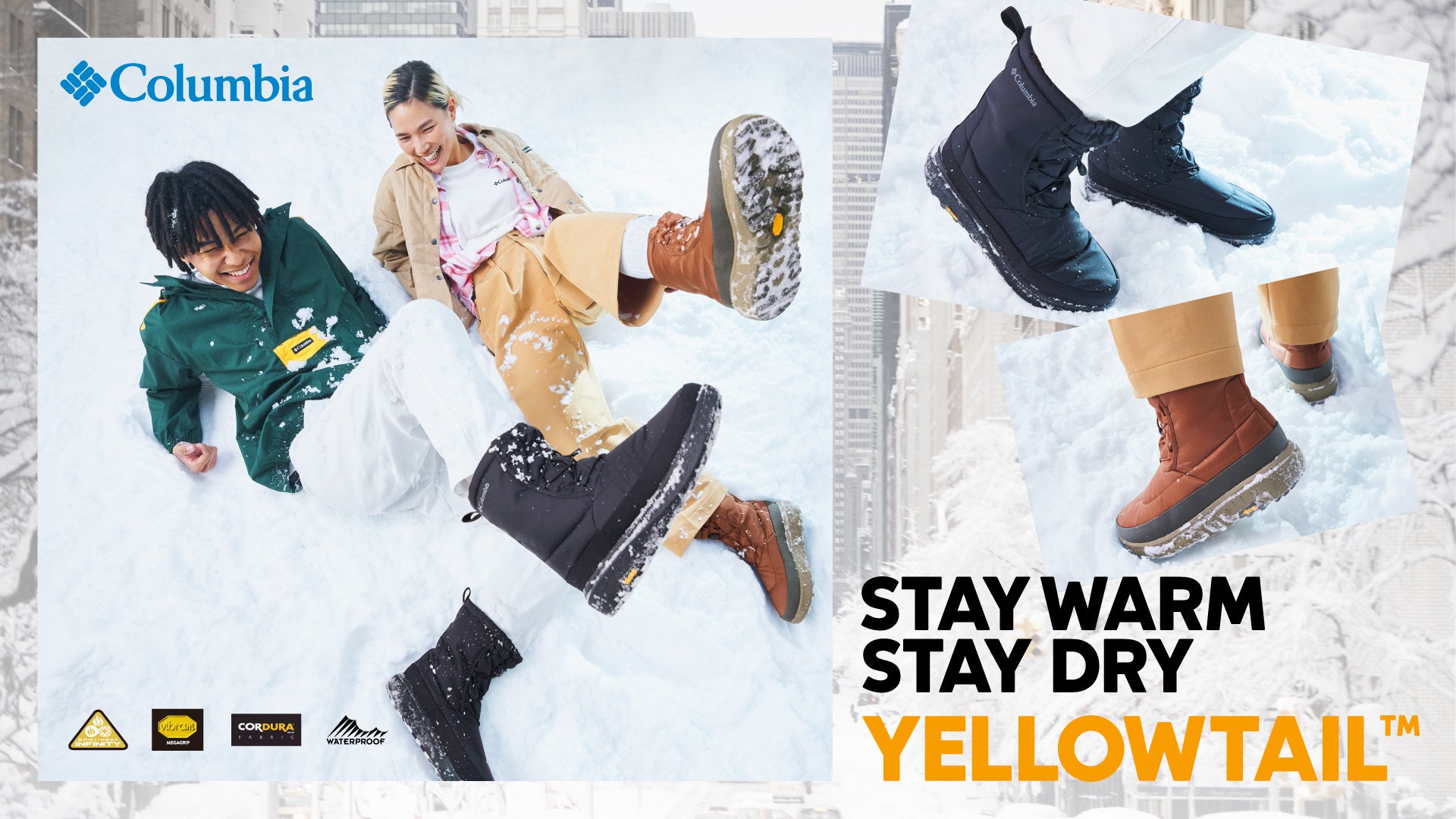フットウェアコレクションからデザイン性と機能性を両立させたウィンターブーツ「YELLOWTAIL(イエローテイル)」の新作をリリース致します。2023年から展開している「イエローテイル」は保温・防水・防滑の3機能を備えたアドアバンスシリーズと保温・防水の2機能を備えたなレギュラーモデルを展開。「イエローテイル」シリーズはコロンビア公式オンラインストアや全国の直営店、取り扱い店舗にて販売中。