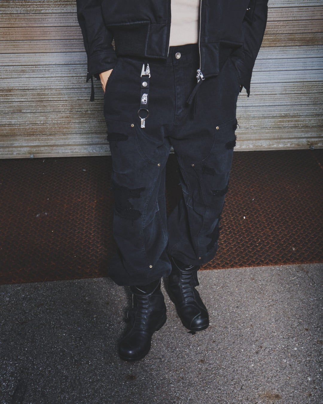 写真のようにベルトループにキーチェーンをつけたり、ハイカットシューズの中に裾をしまい込んで着用したりと、1本でコーデの幅が広がります!
