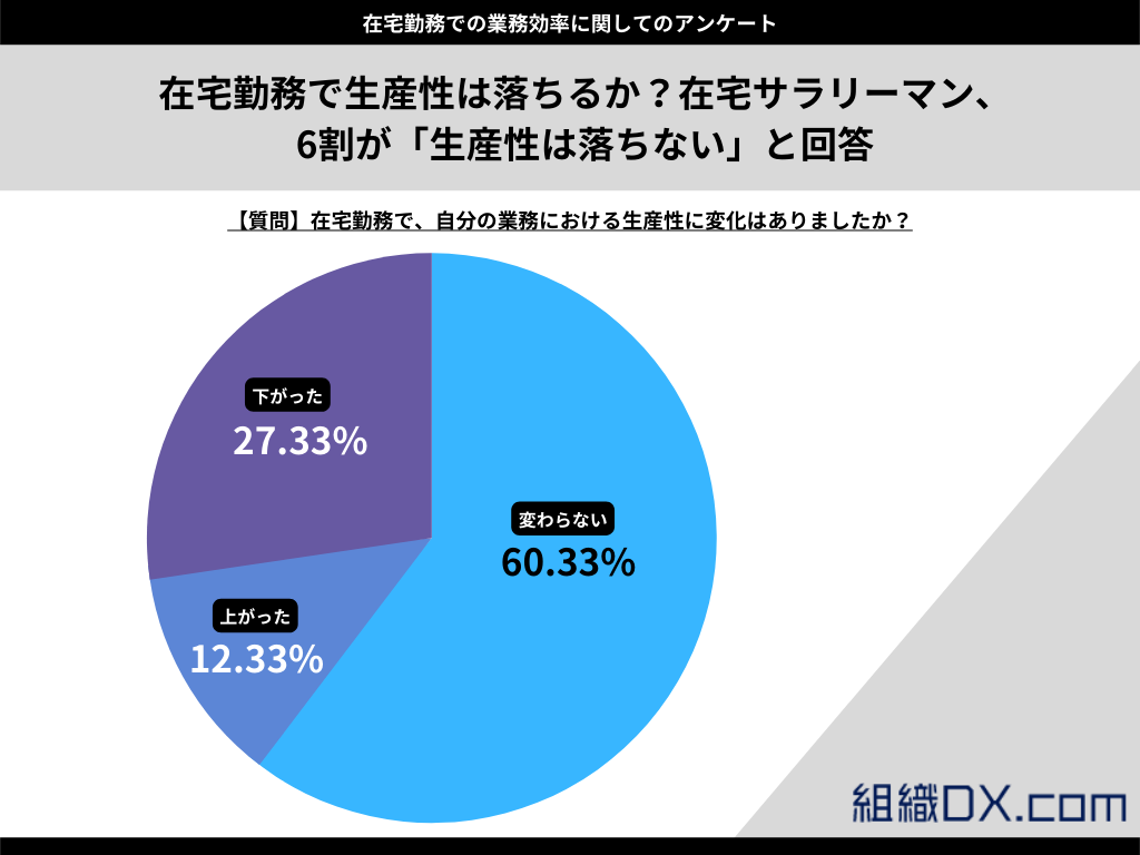 「在宅勤務で自分の生産性に変化があったか」というアンケートに対する回答は以下の通りです。