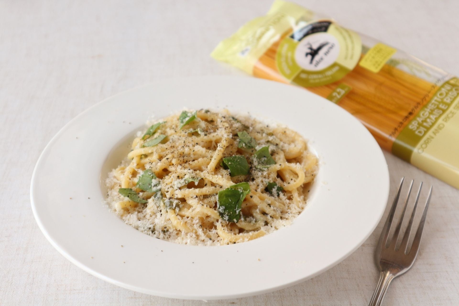 通常、パスタはデュラム小麦などを原料として作られます。本製品は小麦を一切使用せず、イタリア産の有機とうもろこしと有機米のみで製造しているため、グルテンを摂取できない、もしくは控えたい方や小麦アレルギー疾患の方でもパスタを美味しく食べることができる商品です。味わいの特徴は、とうもろこしと米のほのかな甘味と香り、もちっとした食感。調理方法や合わせるソースもいつもの通りに作ることができるので、お好みのソースを合わせてお召し上がりください。
