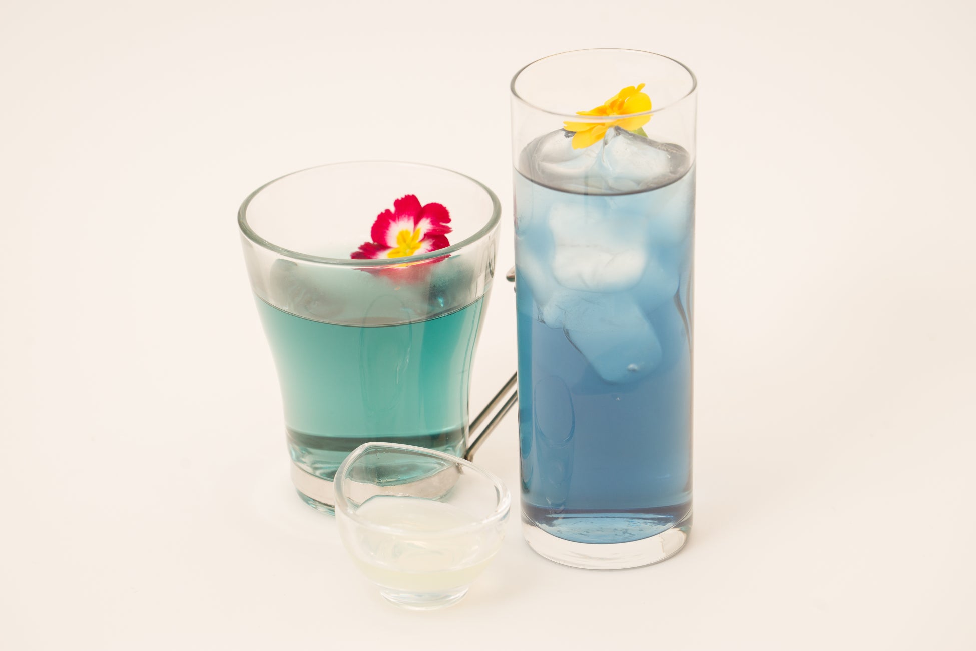 鳥取県産バタフライピーを使用した、幻想的な青色のハーブティー。