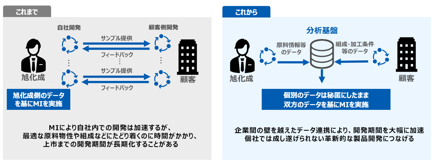 また、秘密計算を活用し、相互のデータを秘匿したまま他社とデータ連携・分析を行うことができる「共創型MI」など、個社では成し遂げられない革新的な製品開発を目指し、企業間の壁を越えた取り組みを進めています。