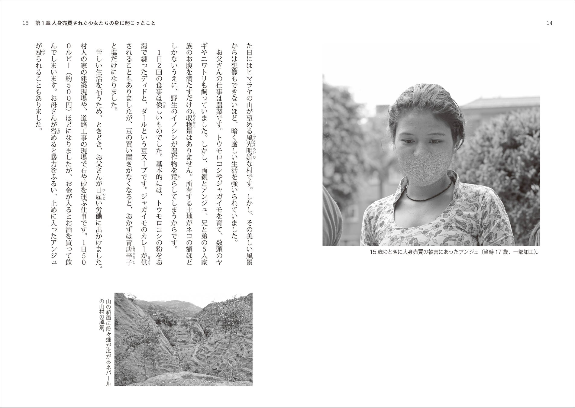 小さな新聞記事から / 少女たちを保護する女性を探して / 紅茶1杯の値段で売られる少女たち /差別と偏見 / 突然、娘が姿を消す村 / 〈ラリグラス・ジャパン〉の立ち上げ / 現地調査とスタディーツアー / 〈マイティ・ネパール〉が行う人身売買被害者の保護活動 / プリベンション・キャンプの活動 / ヘタウダが供給地になったわけ / 家に帰れないさまざまな事情 / ホスピスで暮らすHIV感染者