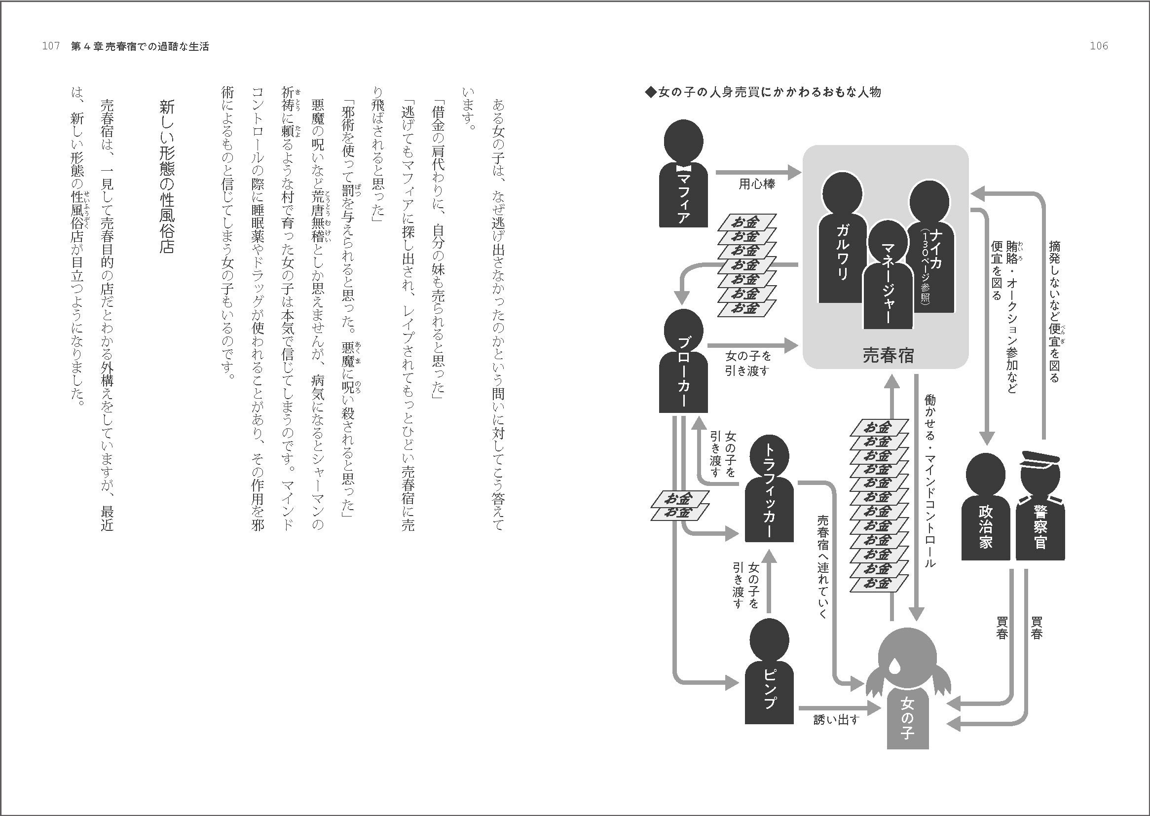 圧倒的な暴力のシステムと、それに抵抗し、被害女性たちの救出・保護・自立支援をおこなう人びと、救出された少女たちの再起の姿を知り、考えたい。