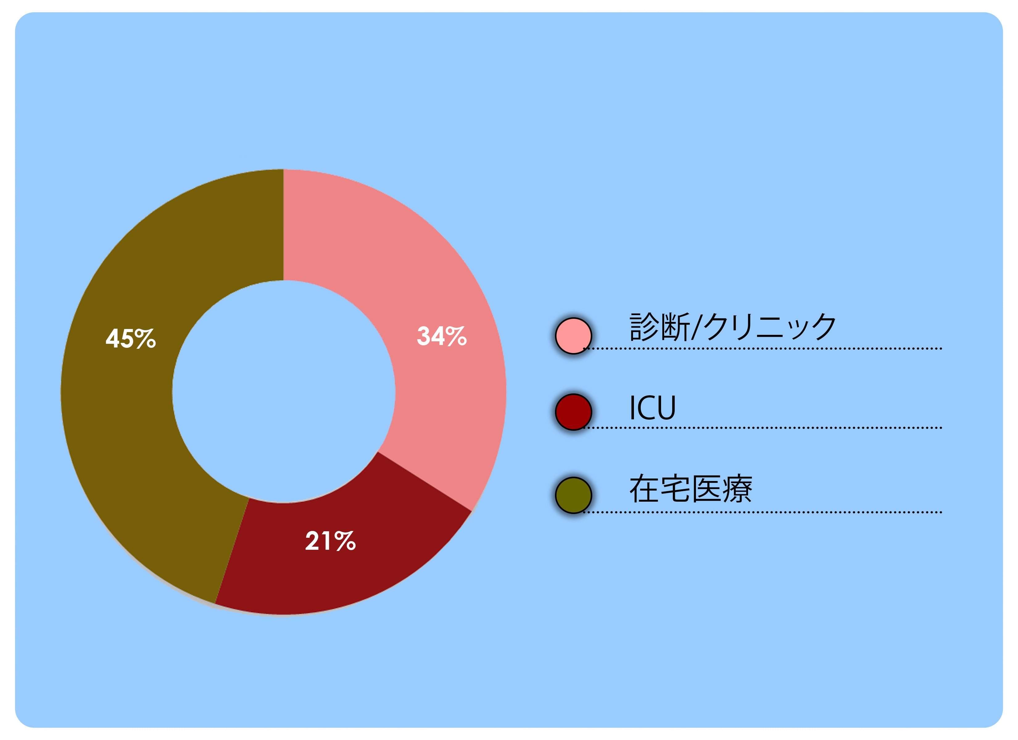 エンドユーザーに基づいて、市場は診断/クリニック、ICU、在宅医療に分かれています。