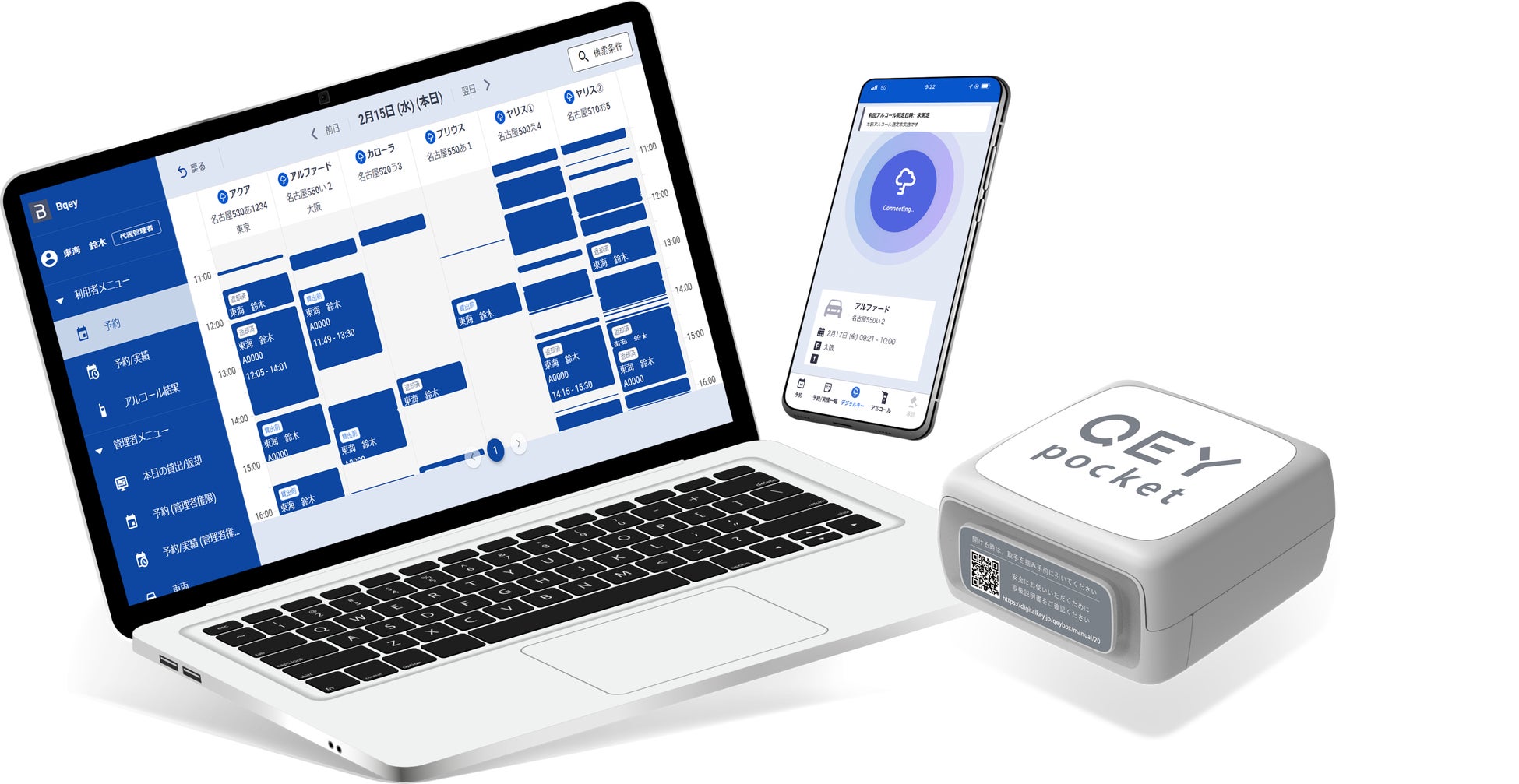 社用車の予約・鍵の施解錠(デジタルキー)・アルコールチェック記録・日常点検記録などをクラウドで一元管理することで、管理業務効率化とドライバーの利便性向上に加え、コンプライアンス強化を実現します。また、SDGsをより推進させるため、ペーパーレス化による環境保全、アルコールチェックの徹底による安全な交通環境の構築、車両台数最適化によるCO2削減などを実現できる機能を搭載しました。